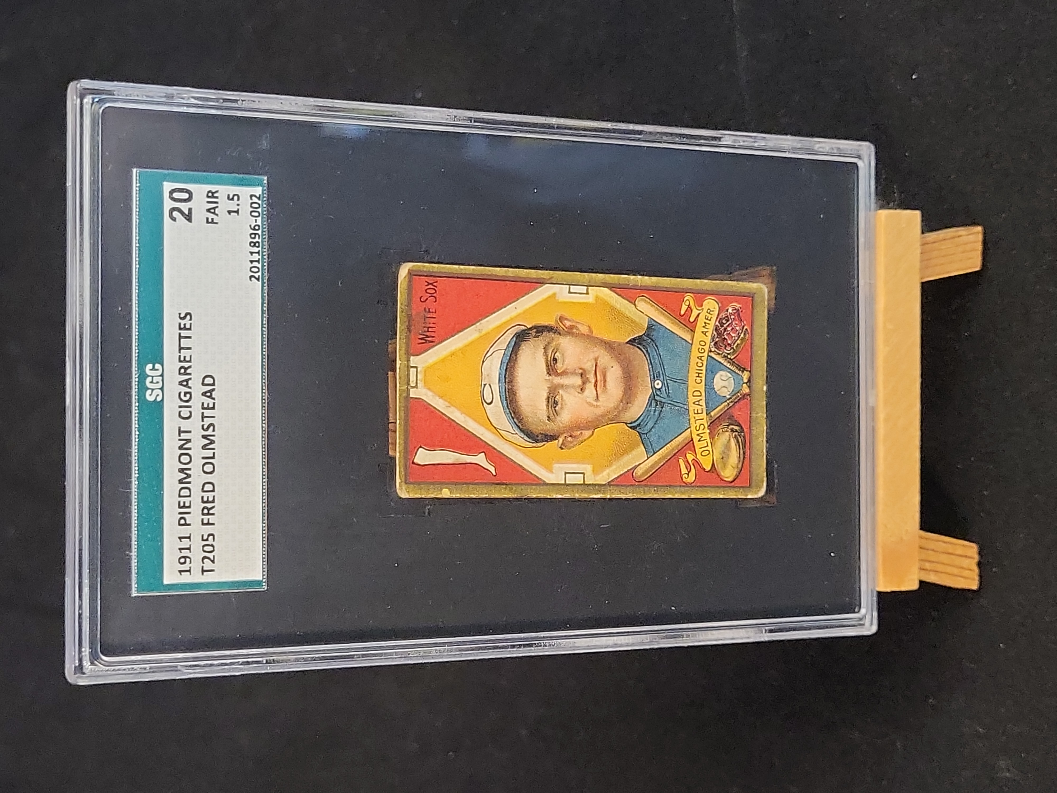 BID PER WHAT YOU SEE IN THE PHOTO, NOT THE AI GENERATED TITLES AND DESCRIPTIONS! 1911 T205 Piedmont Cigarettes Fred Olmstead Gold Border SGC 1.5 FAIR
