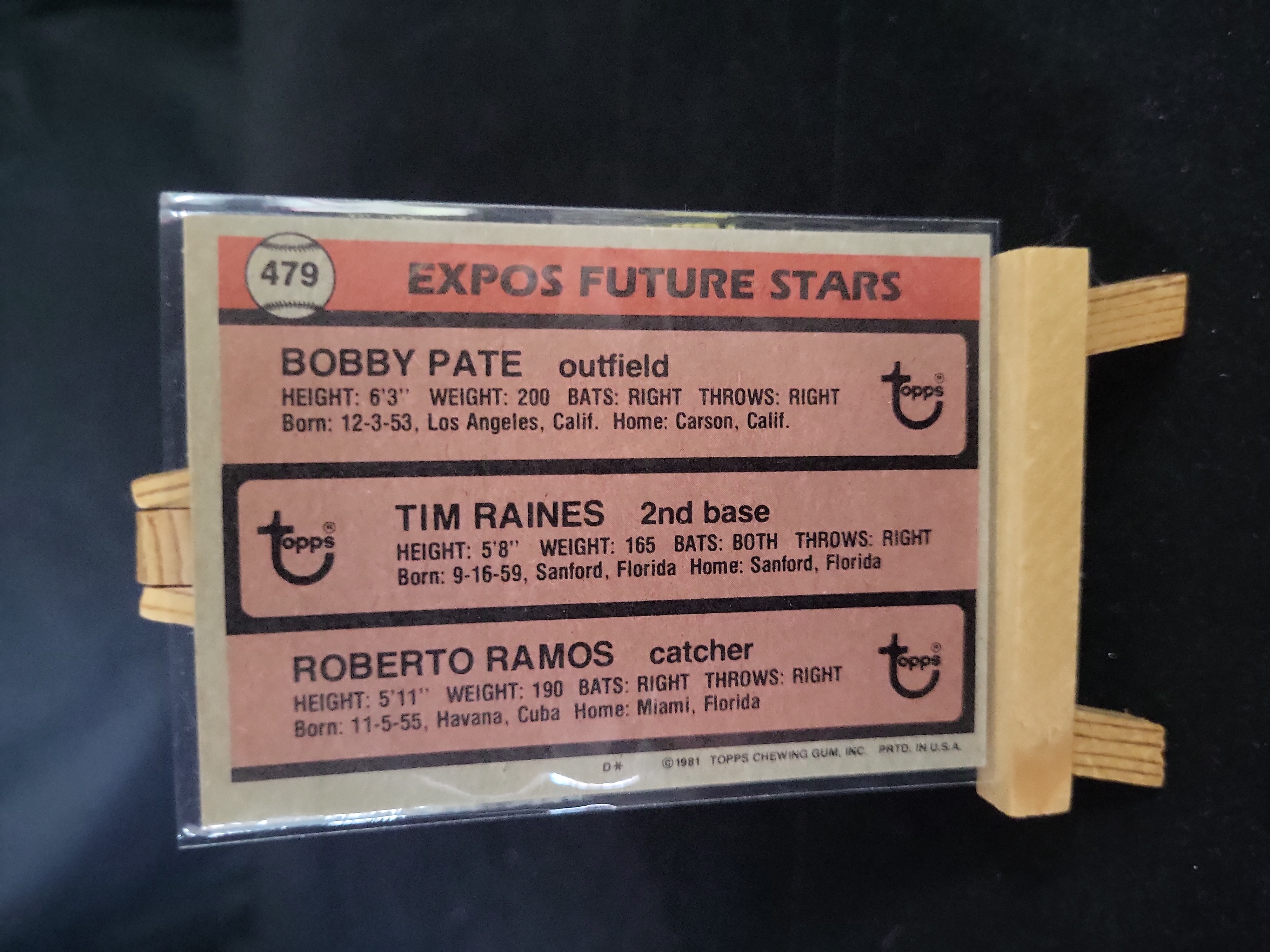 Brand: Topps. Year: 1981. Set: Topps Baseball. Card Number: 479. Players: Tim Raines, Roberto Ramos, Bobby Pate. Rookie Status: This is the primary rookie card for Hall of Famer Tim Raines. Parallel Type: Base set. Certification: Raw / Ungraded.