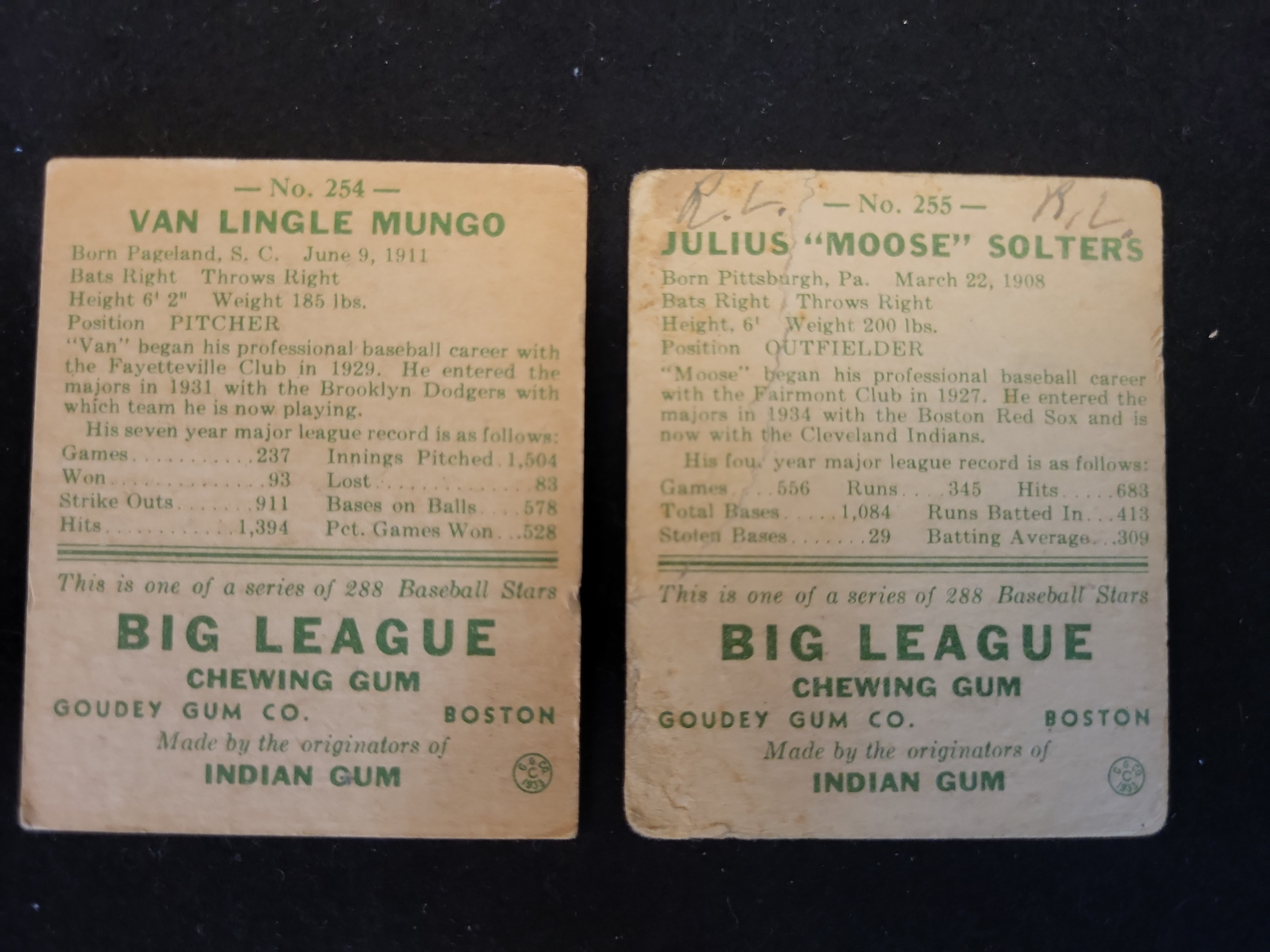 I00912 | Baseball 1938 Goudey Heads Up Van Lingle Mungo #254 and Julius Solters #255 Lot