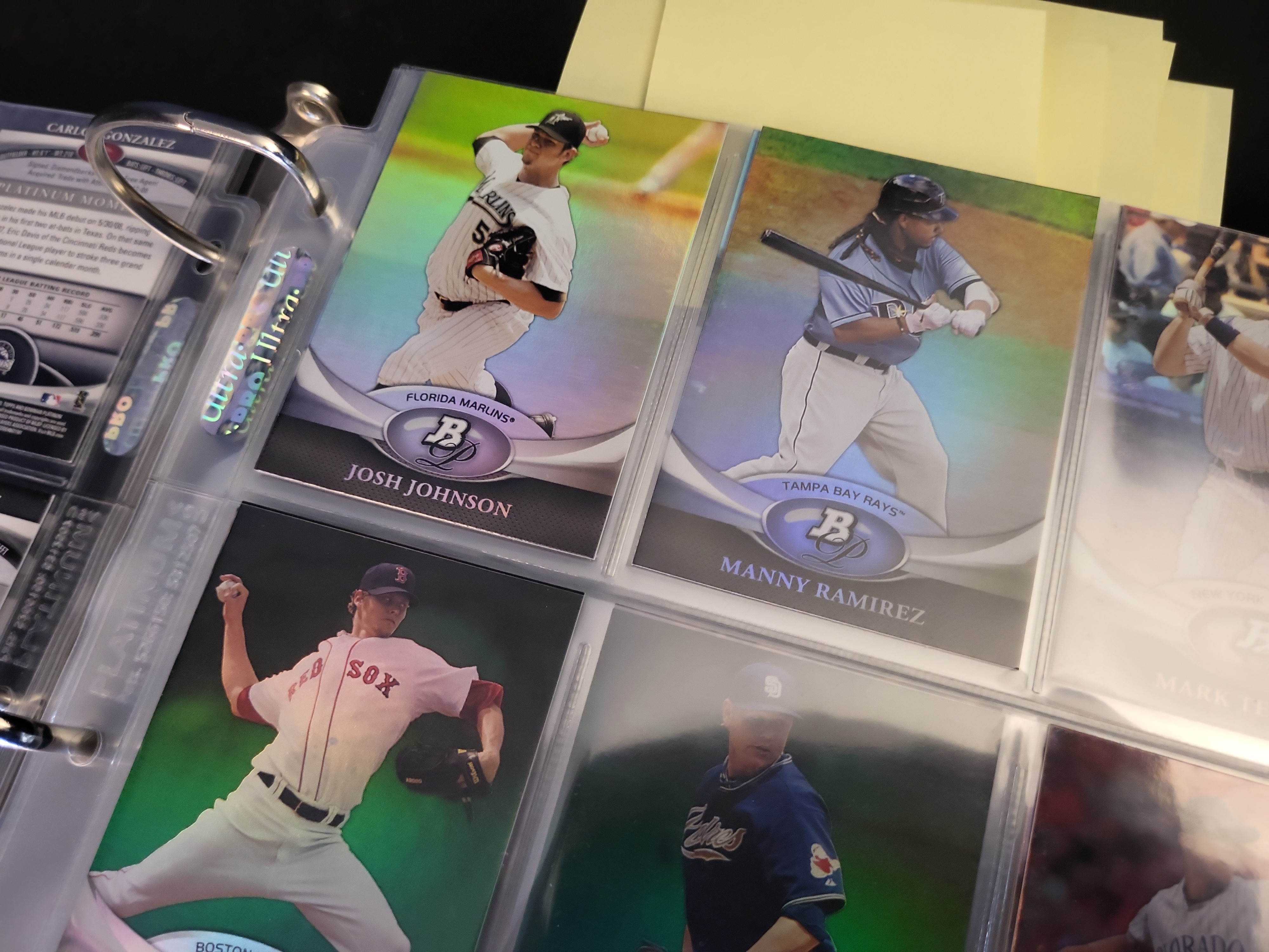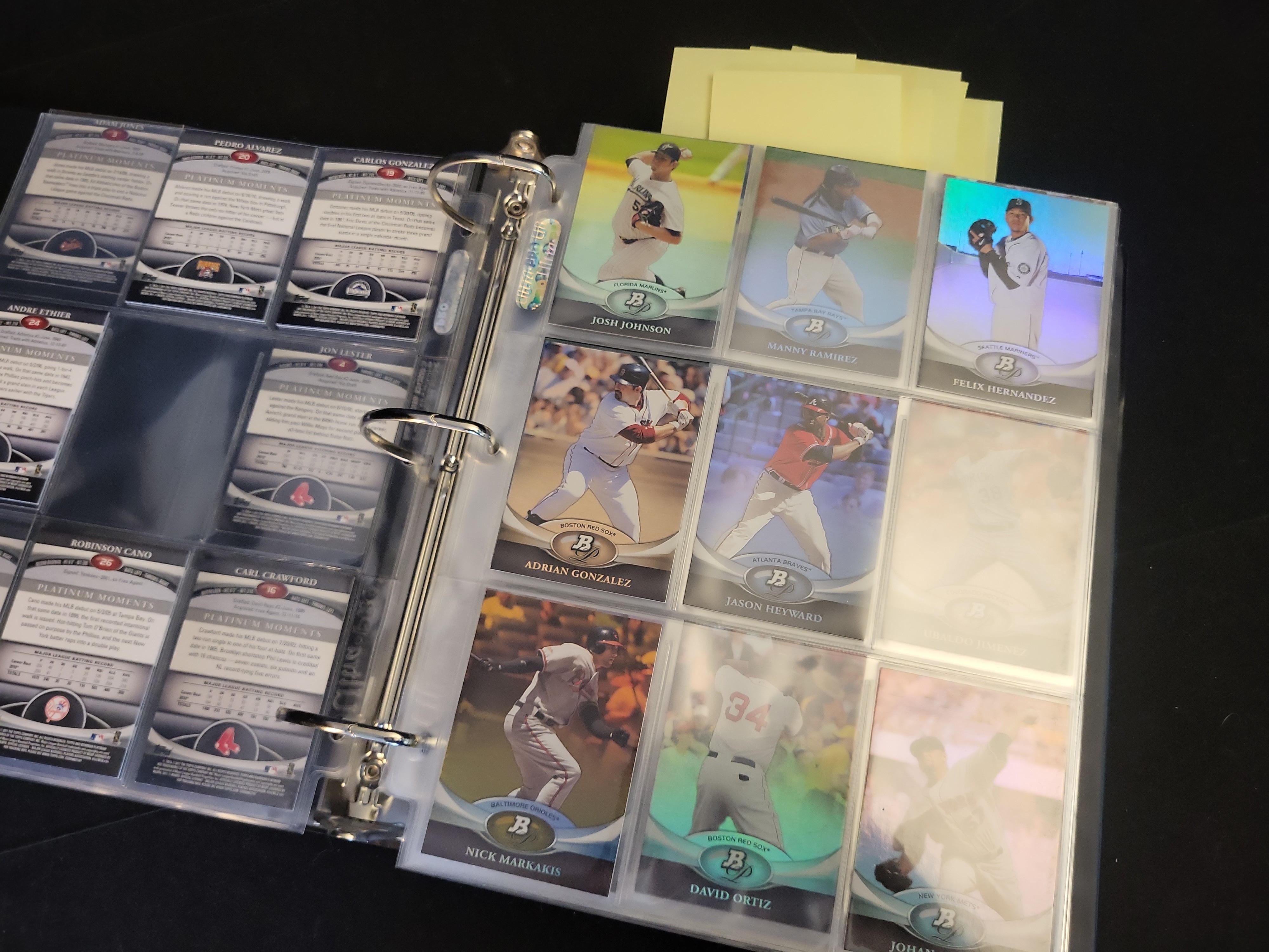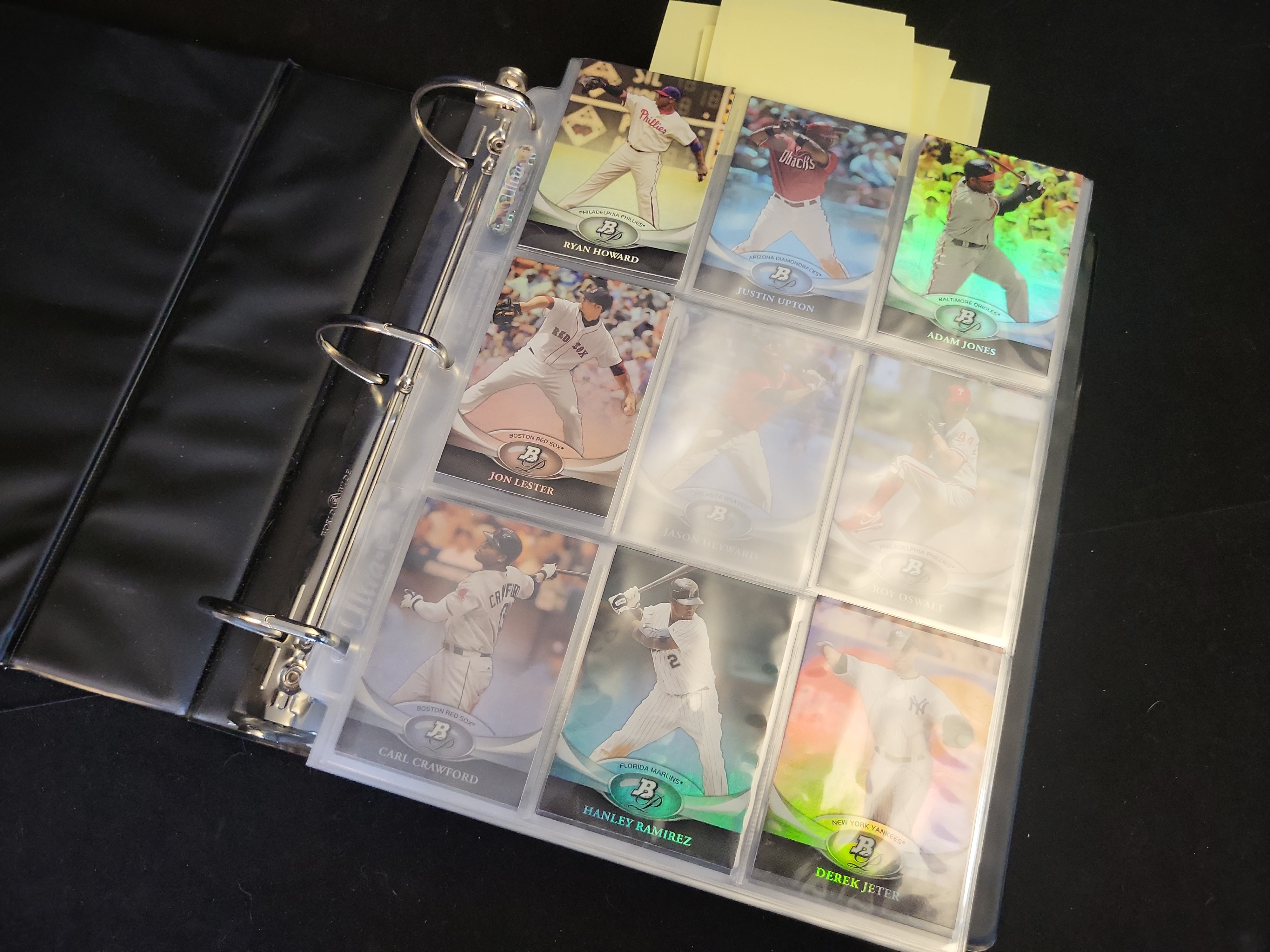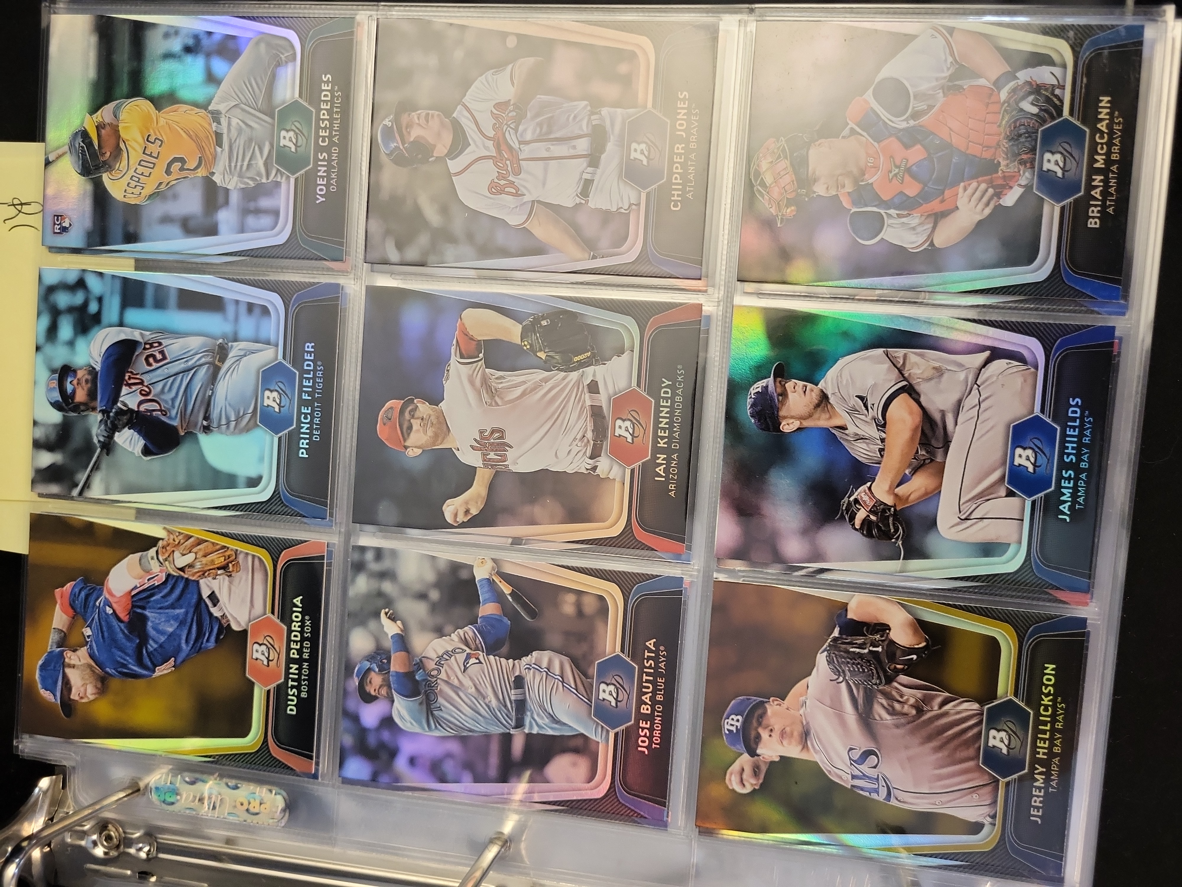 Brand: Bowman Platinum by Topps. Years: 2010, 2011, 2012. Set: Base and Prospects. Notable cards: 2012 Bryce Harper #BVP-BH (RC), 2012 Mike Trout #80, 2011 Albert Pujols #68, 2011 Derek Jeter #25. Rookie status: Bryce Harper, Yoenis Cespedes, Drew Pomeranz, Jesus Montero. Parallel types: Refractor and Platinum Foil. Certification: None.