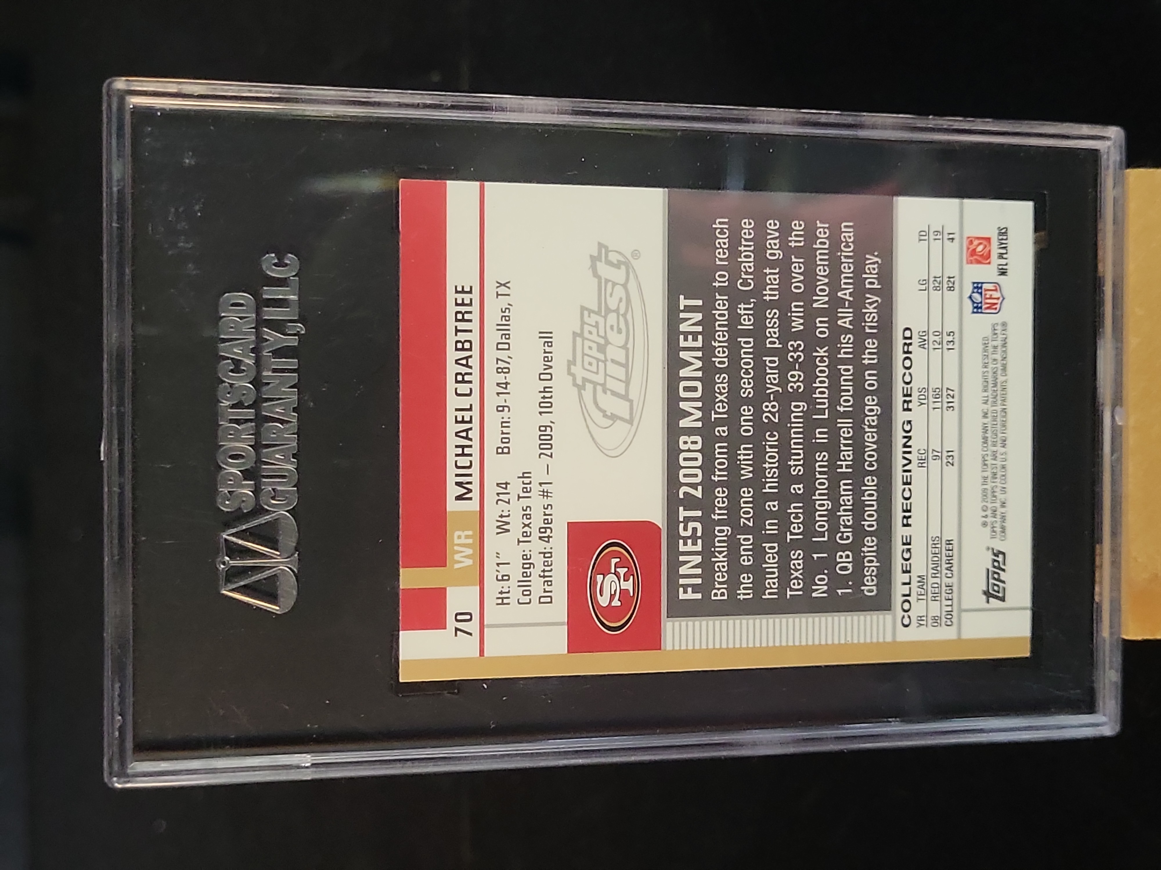BID PER WHAT YOU SEE IN THE PHOTO, NOT THE AI GENERATED TITLES AND DESCRIPTIONS! 2009 Topps Finest Michael Crabtree Rookie Card SGC 96 MINT 9