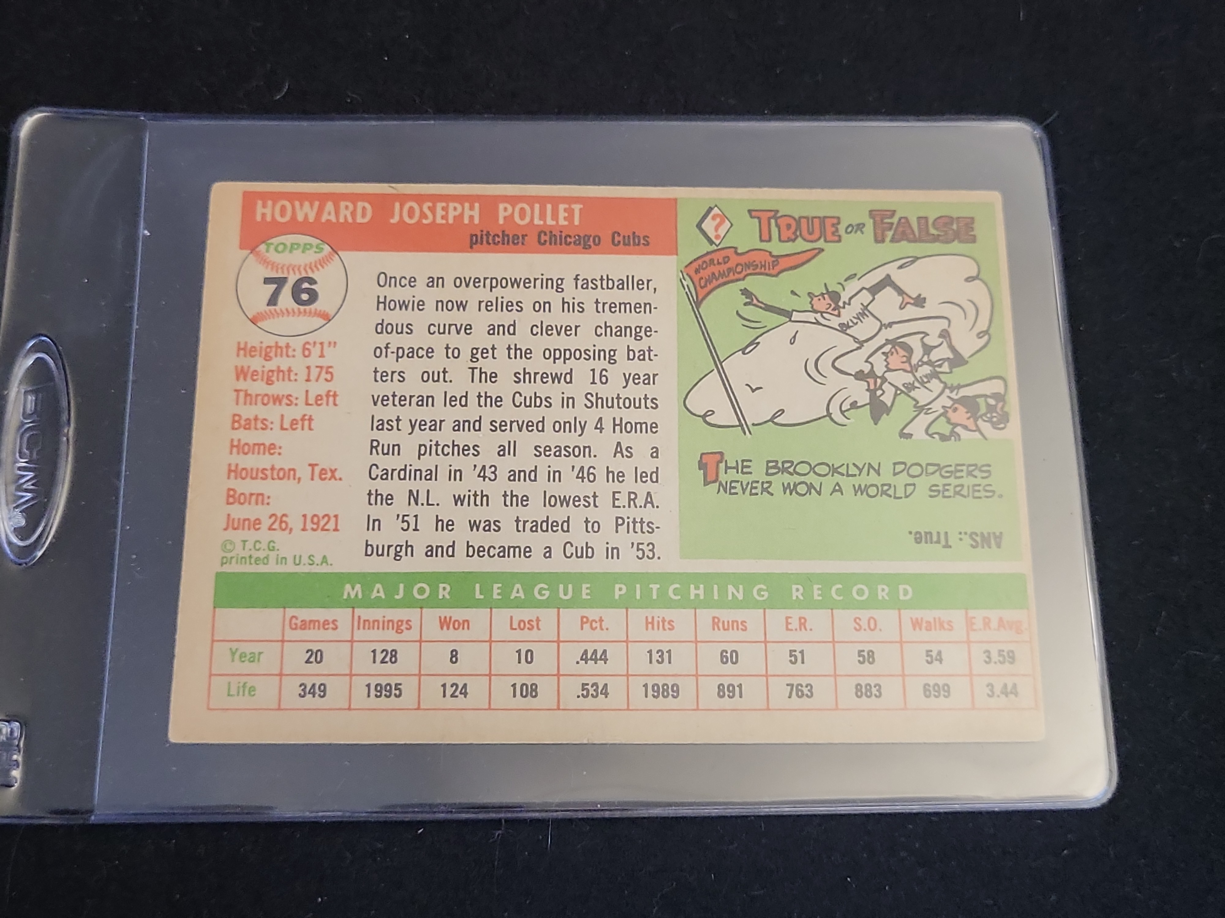 Topps, 1956, Baseball Base Set, #76, Howie Pollet, veteran status, base card featuring horizontal dual-image design, ungraded.
