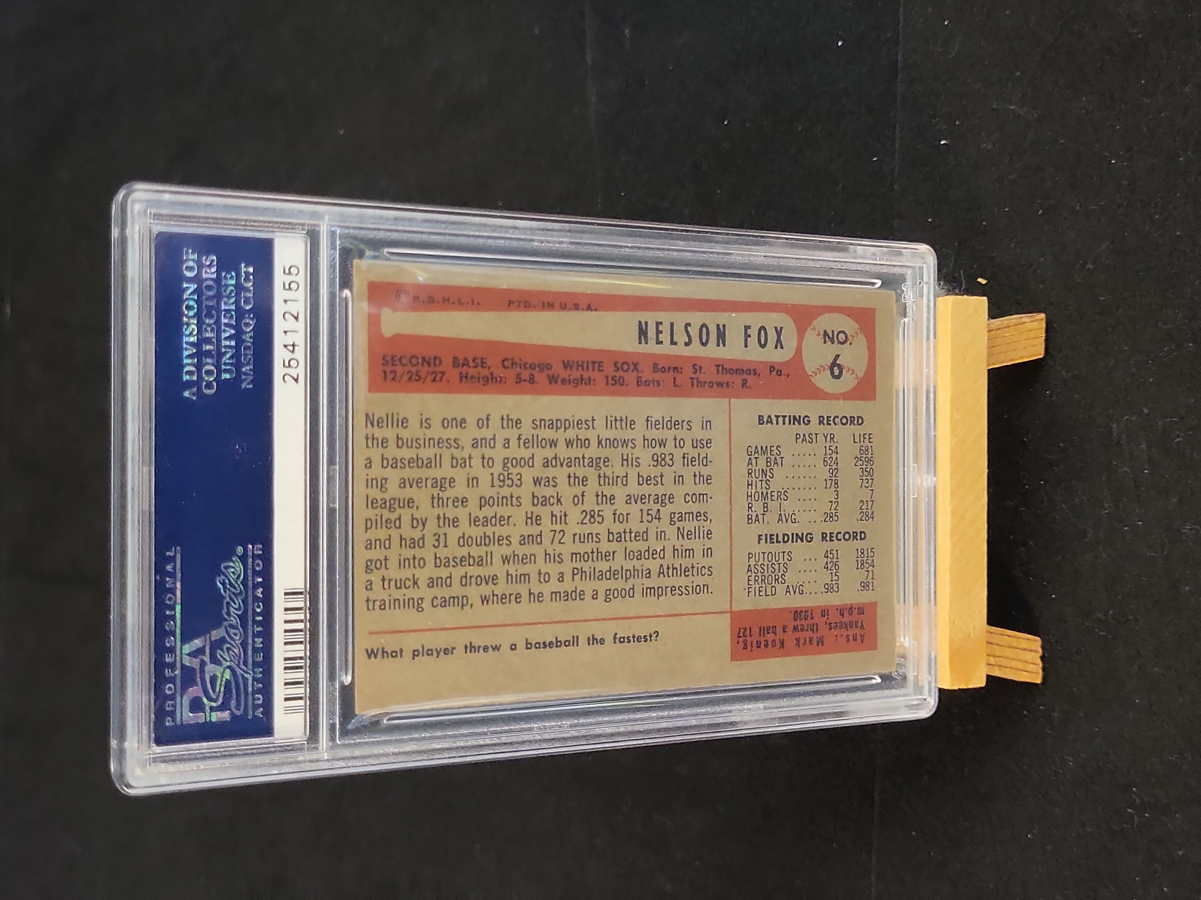 BID PER WHAT YOU SEE IN THE PHOTO, NOT THE AI GENERATED TITLES AND DESCRIPTIONS! 1954 Bowman Nellie Fox #6 Baseball Card PSA VG-EX+ 4.5