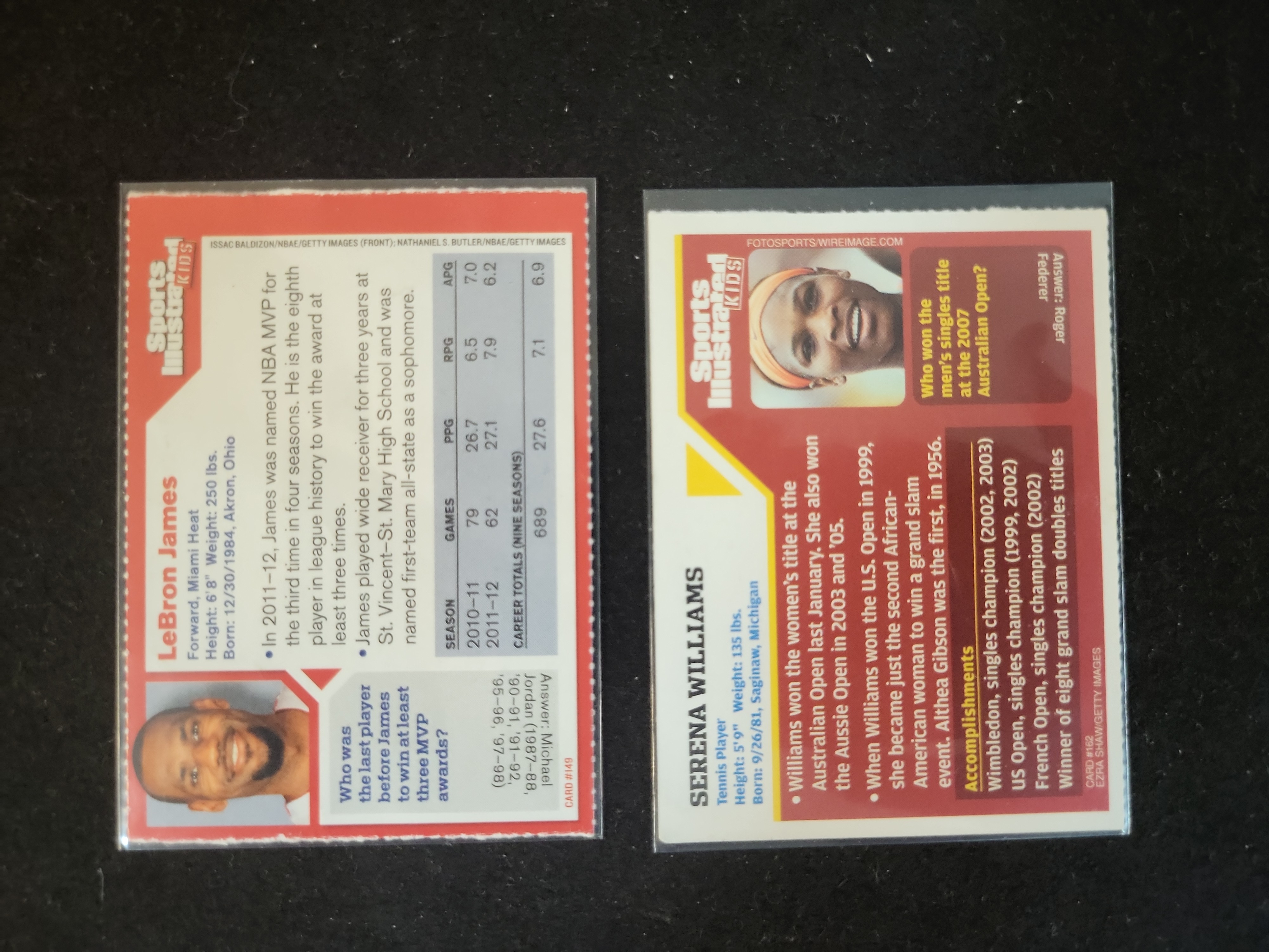 I01170 | 2008 and 2012 Sports Illustrated Kids LeBron James and Serena Williams Perforated Cards, Raw