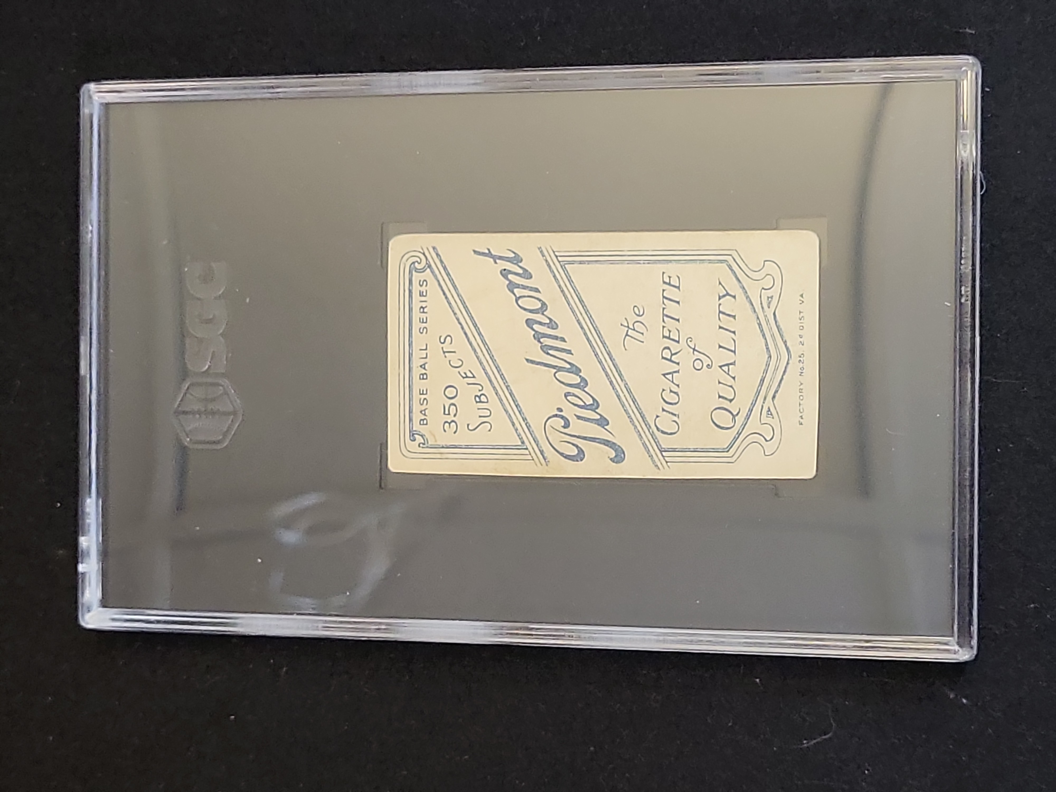 This is an original 1909-11 T206 "White Border" tobacco card featuring Joe Lake of the St. Louis American League team. This card represents the "No Ball in Hand" variation, a distinct pose within the landmark T206 set. The reverse of the card features the Piedmont Cigarettes advertisement for 350 Subjects, specifically identifying Factory No. 25, 2nd District of Virginia. The T206 series is the most iconic and widely collected set of the tobacco era, distributed by the American Tobacco Company. This specimen has been professionally authenticated and encapsulated by SGC (Sportscard Guaranty Corporation).