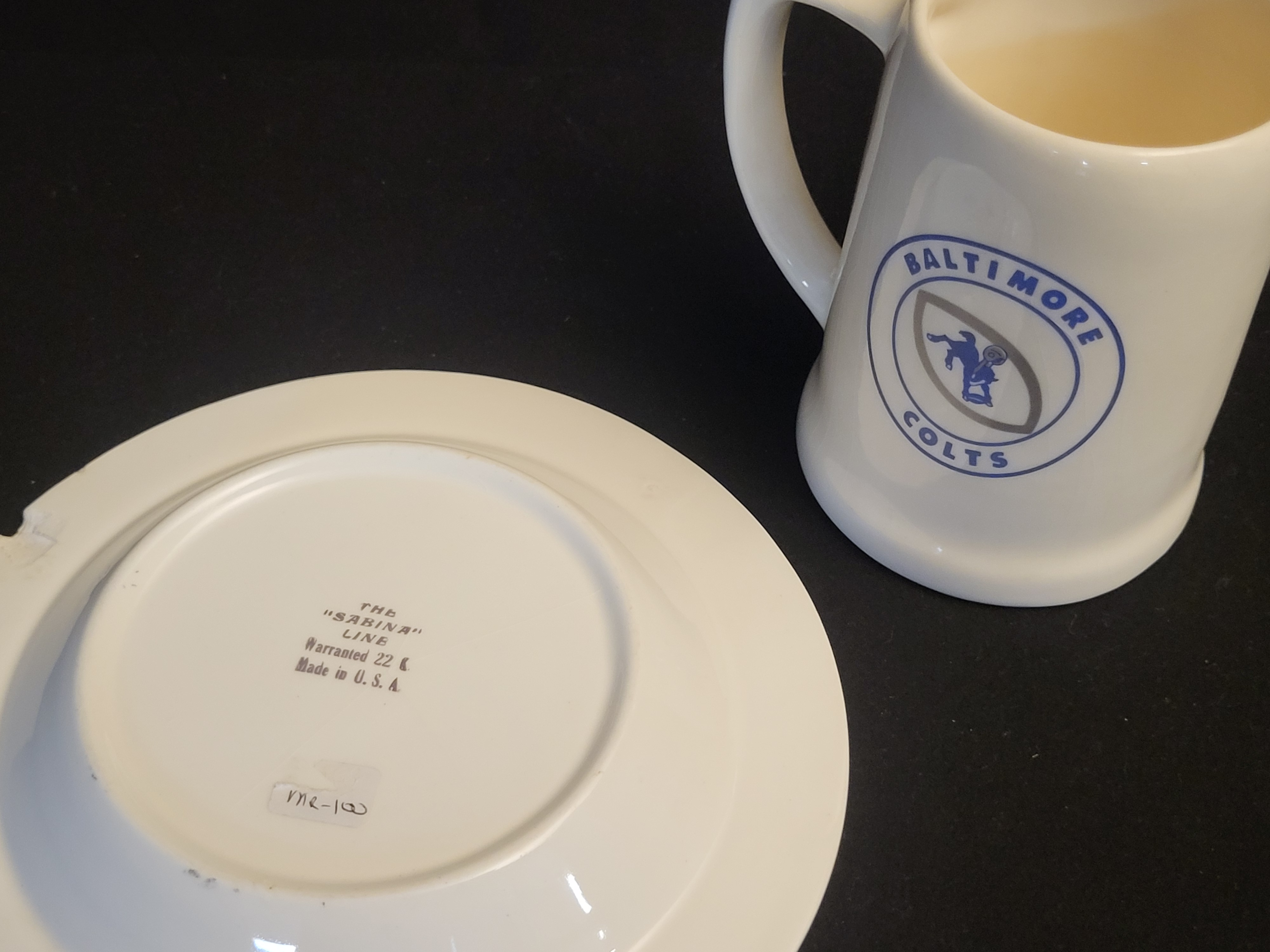 BID PER WHAT YOU SEE IN THE PHOTO, NOT THE AI GENERATED TITLES AND DESCRIPTIONS! A Pair of Baltimore Colts 1958 NFL Championship Commemorative Ceramic Items