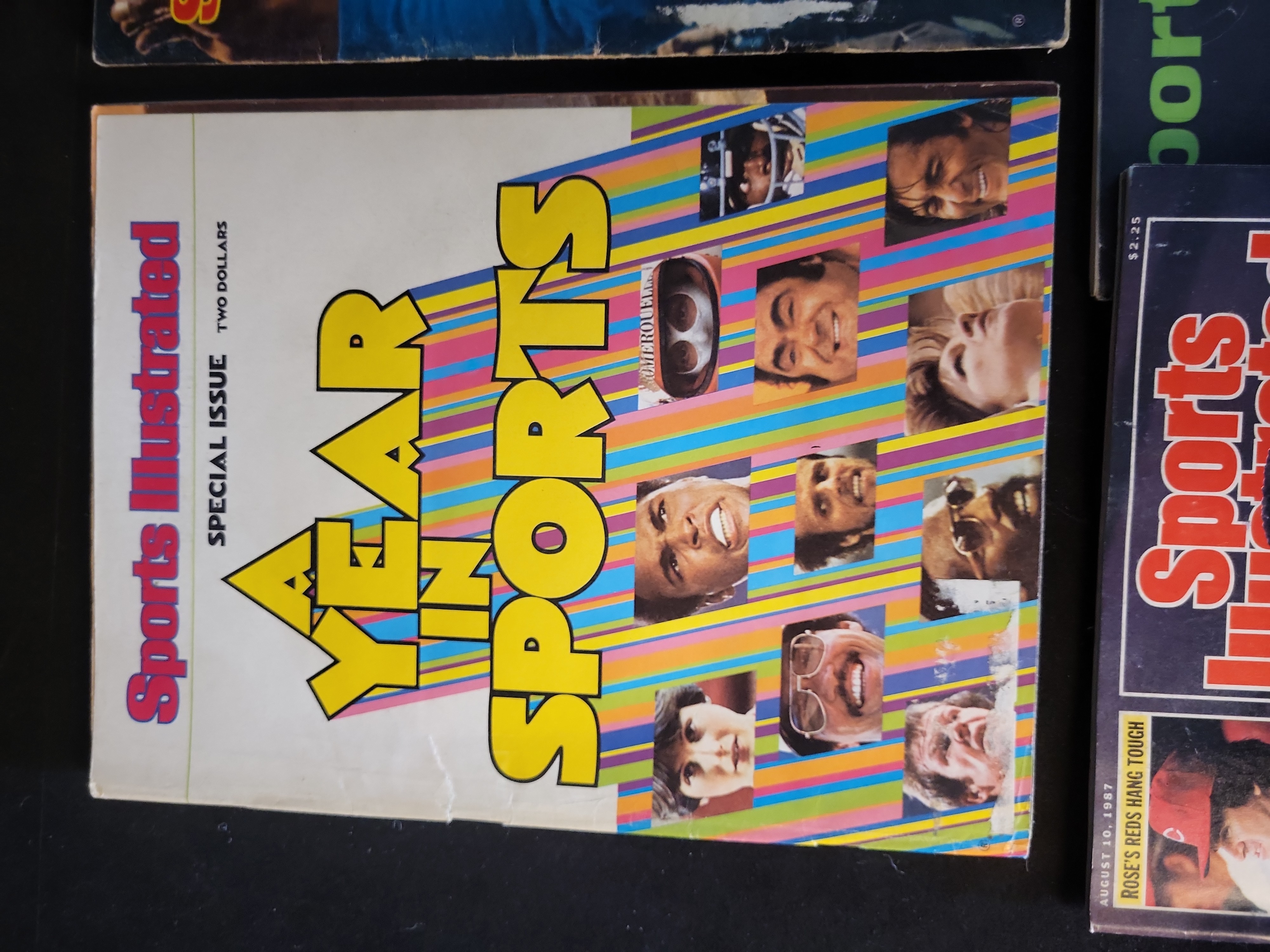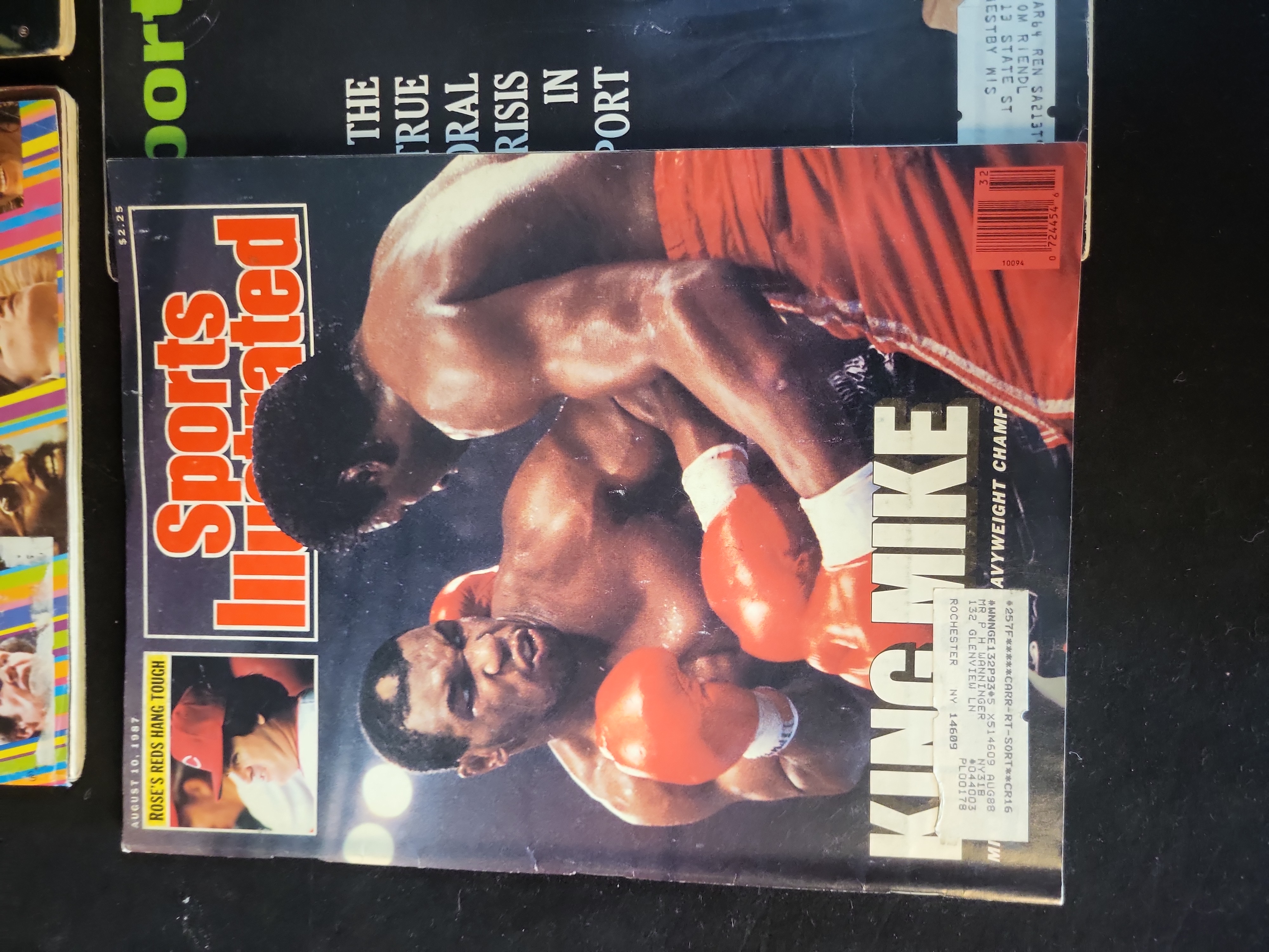 BID PER WHAT YOU SEE IN THE PHOTO, NOT THE AI GENERATED TITLES AND DESCRIPTIONS! Collection of Vintage Sports Illustrated and Dell Sports Magazines Featuring Hank Aaron, Mike Tyson, and Larry Bird, No Authentication