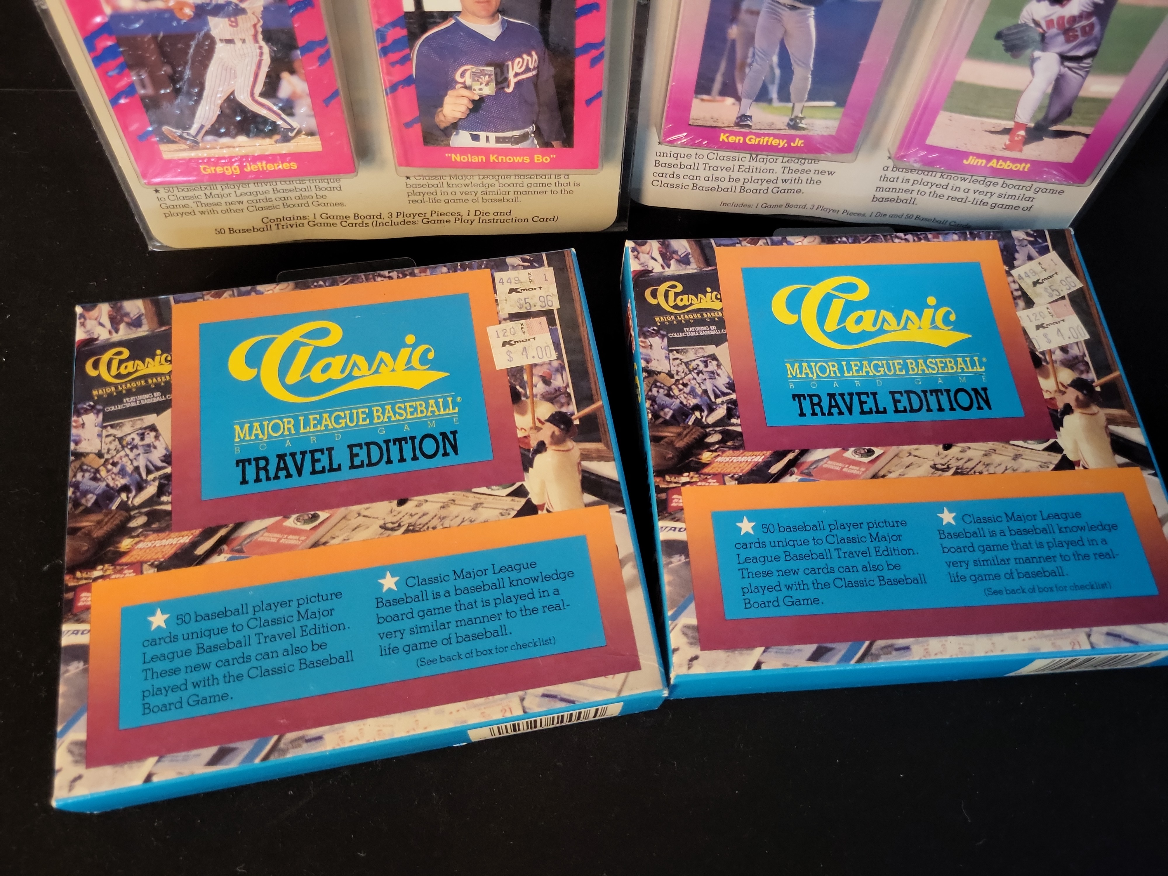 BID PER WHAT YOU SEE IN THE PHOTO, NOT THE AI GENERATED TITLES AND DESCRIPTIONS! 1989-1990 Classic MLB Travel Edition Baseball Card Game Sets, Sealed Lot featuring Ken Griffey Jr. and Nolan Ryan