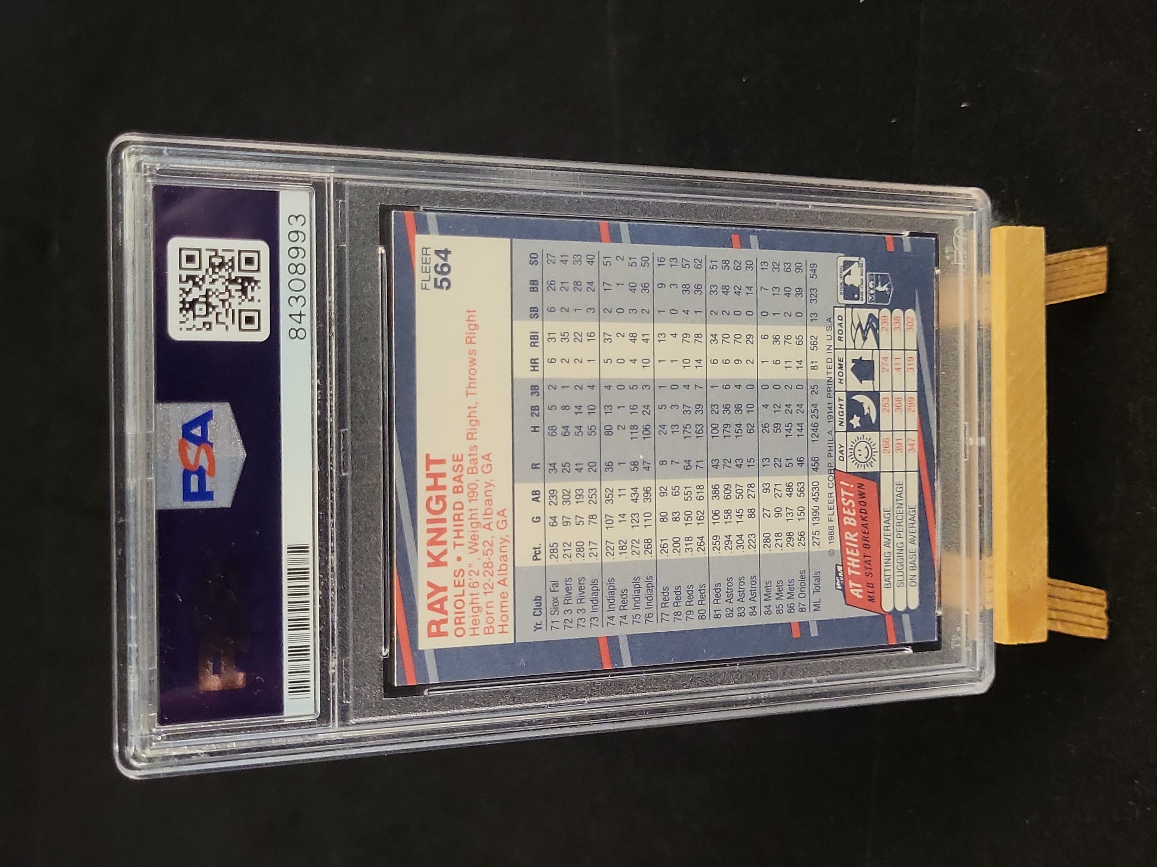 Brand: Fleer. Year: 1988. Set: 1988 Fleer Baseball. Card Number: 564. Player: Ray Knight. Rookie Status: No. Parallel/Insert Type: Base card featuring an after-market autograph. Certification: PSA/DNA Certified Authentic Auto (Cert #84308993). This card features Ray Knight of the Baltimore Orioles in a batting stance. Knight is a two-time All-Star and was the 1986 World Series MVP.