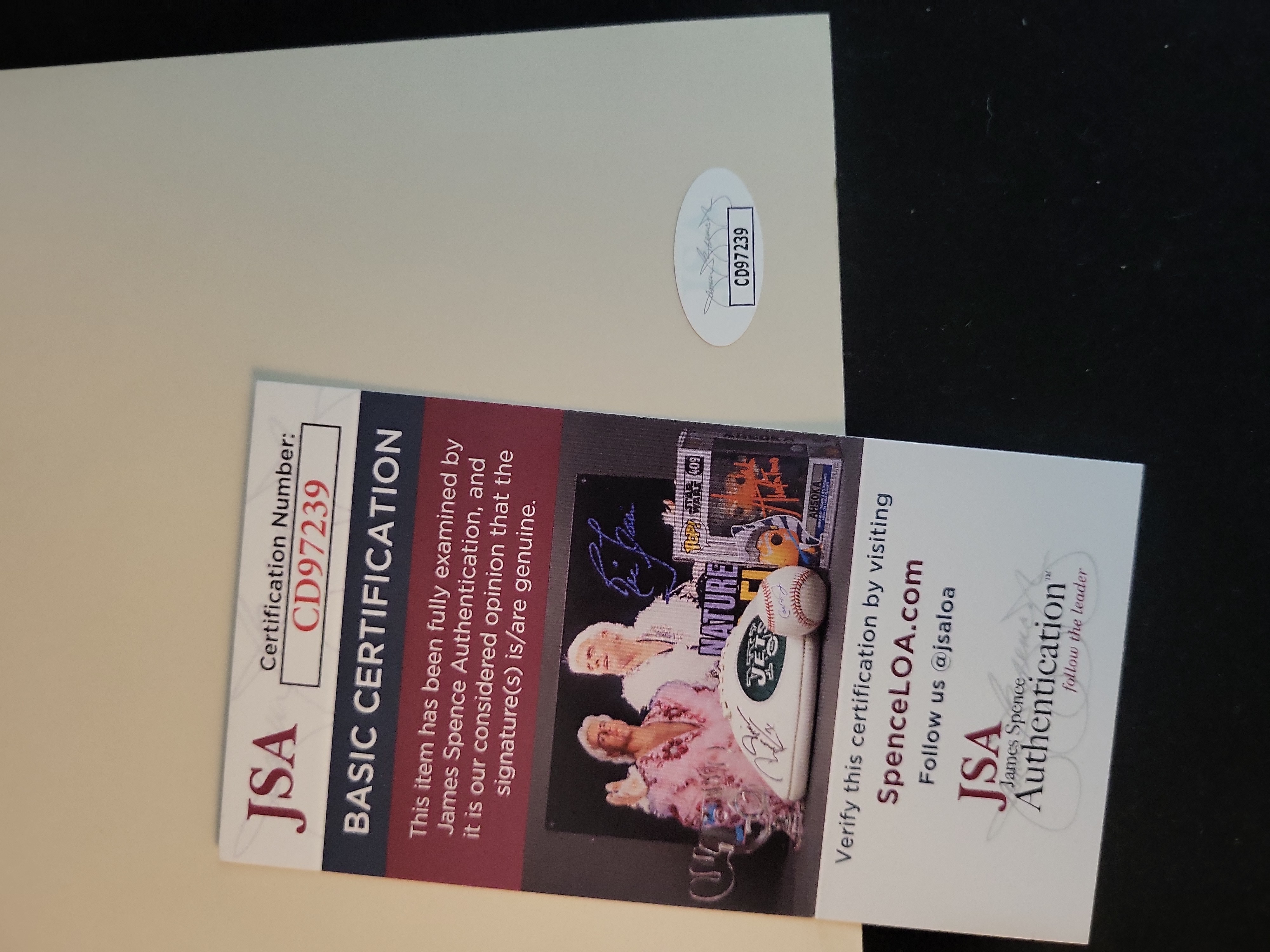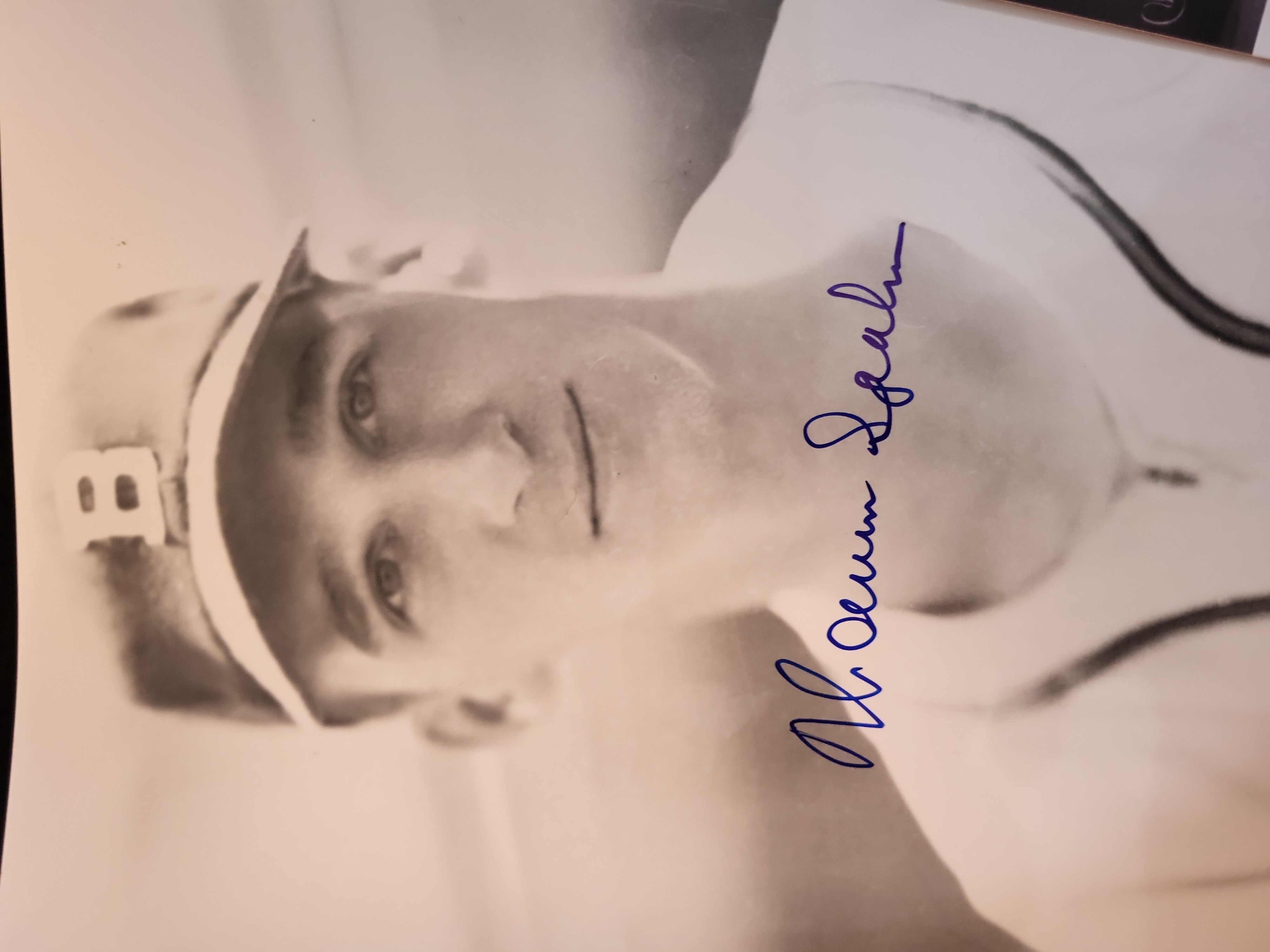 The photograph is in excellent condition with no visible creasing, tears, or surface abrasions. The signature is bold and well-defined, exhibiting high contrast against the light background of the jersey with no signs of fading or ink skipping. The edges and corners remain sharp.