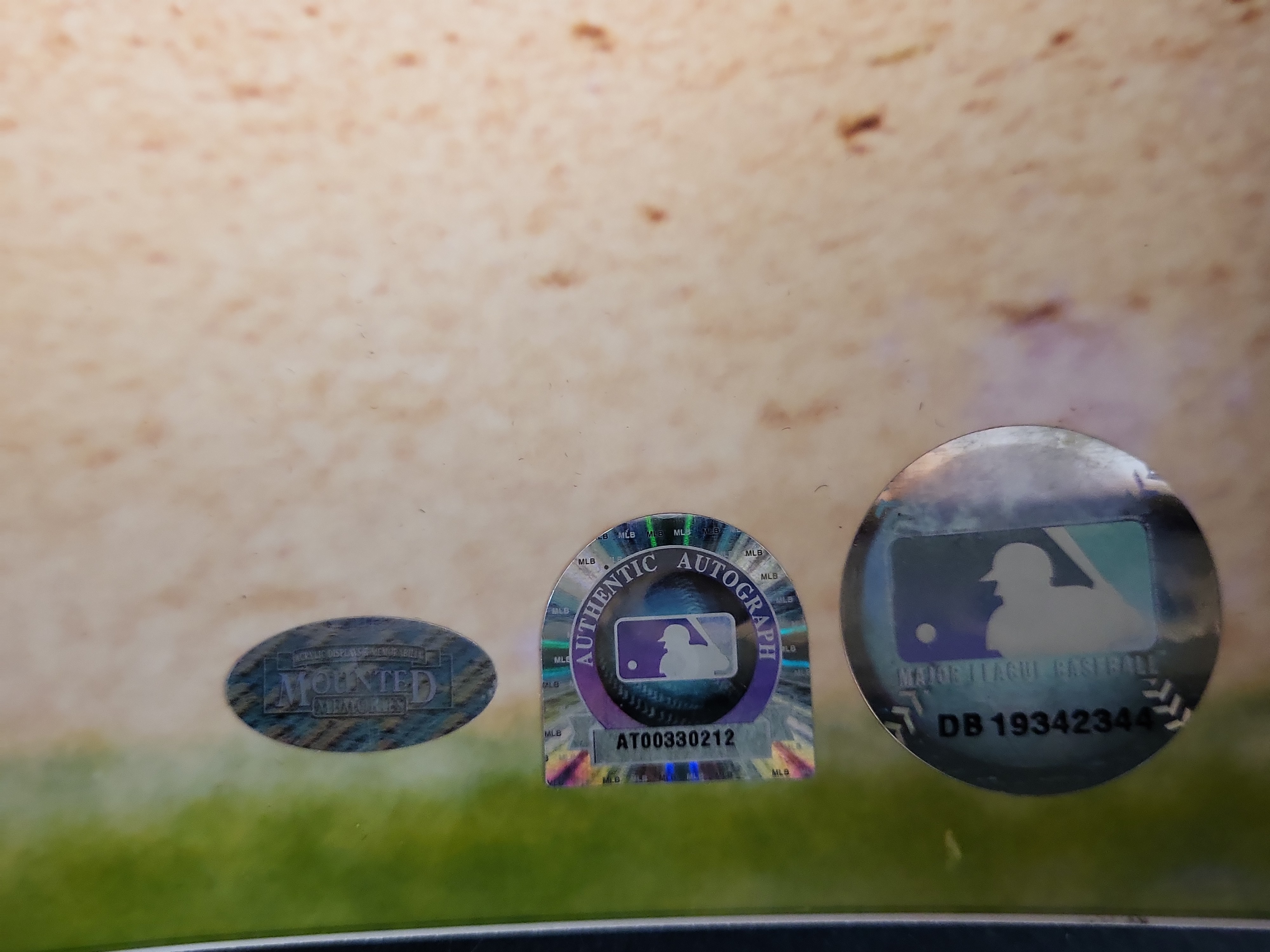 This professional color 8×10 photograph features Mike Hampton, former pitcher for the Colorado Rockies, captured in a dynamic mid-delivery action sequence. Hampton is depicted in the team’s classic white pinstripe home uniform, with his jersey number 10 clearly visible. The photograph is hand-signed by Mike Hampton in bold blue felt-tip marker in the upper center field. This item is supported by exceptional provenance, featuring a triple-authentication system: an MLB Authentic Autograph Hologram (Serial #AT00330212), an MLB Official Hologram (Serial #DB 19342344), and an oval-shaped Mounted Memories holographic tamper-evident seal. The image captures authentic game-day details, including visible grass and dirt stains on the player’s uniform pants.