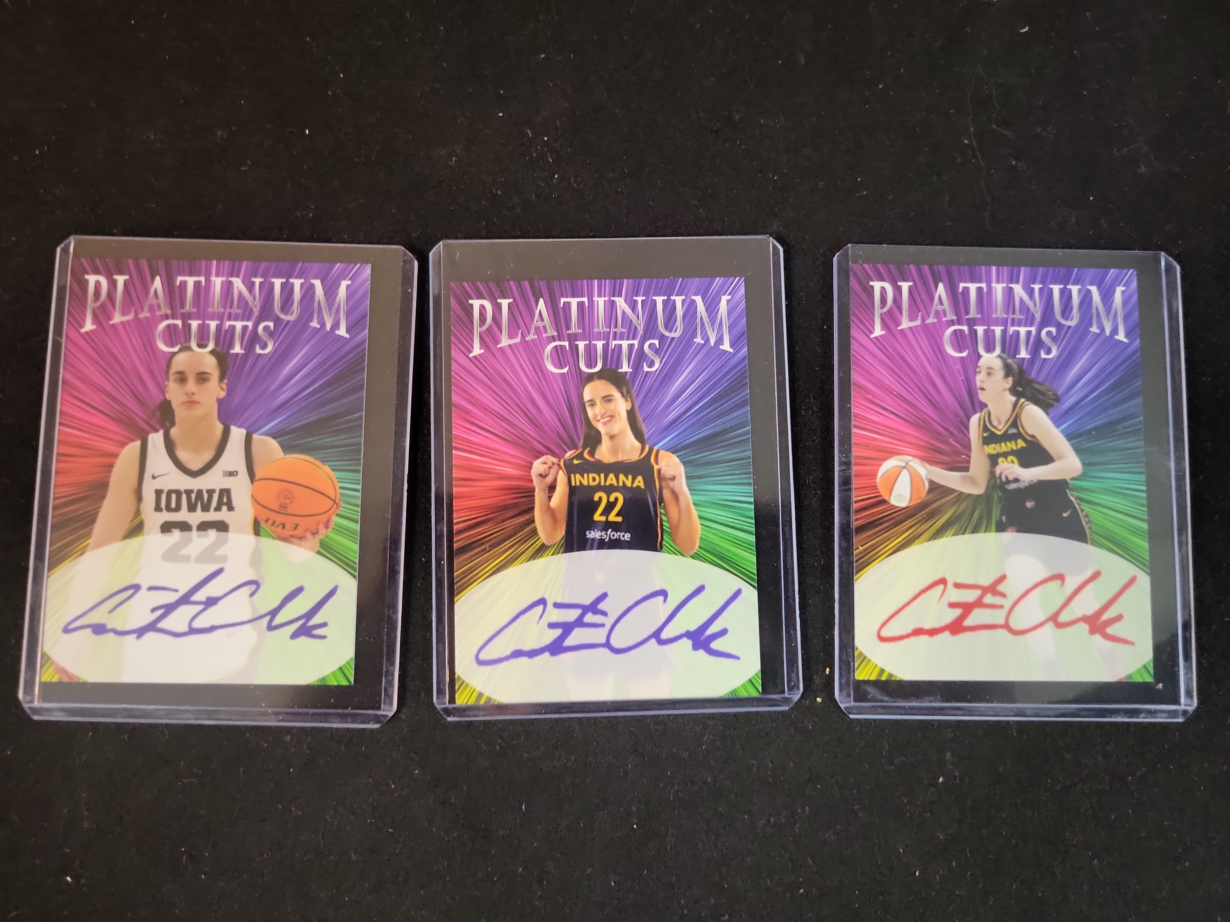 I01201 | 2024 Platinum Cuts Caitlin Clark Rookie Card Collection, Three Facsimile Signature Cards