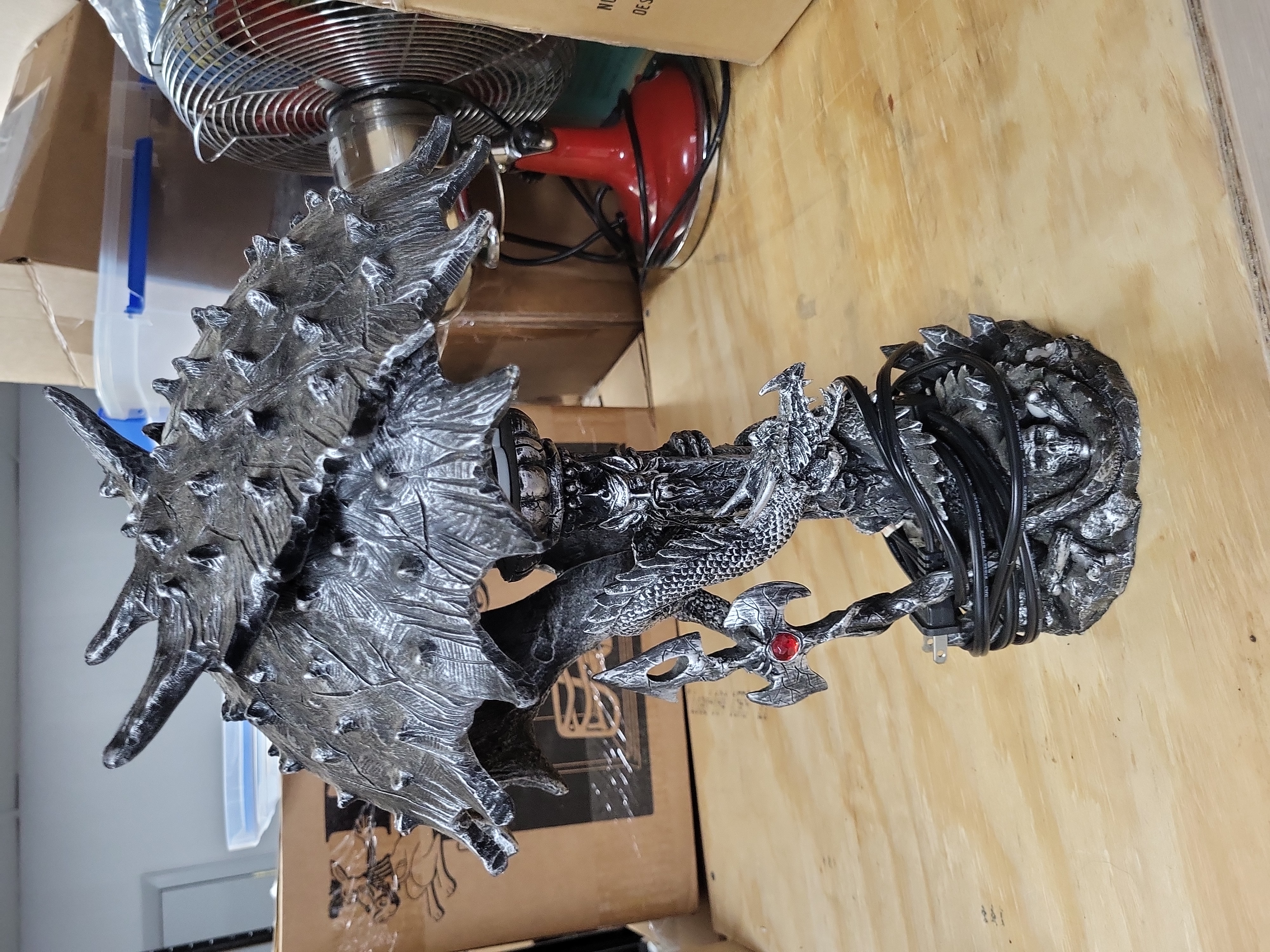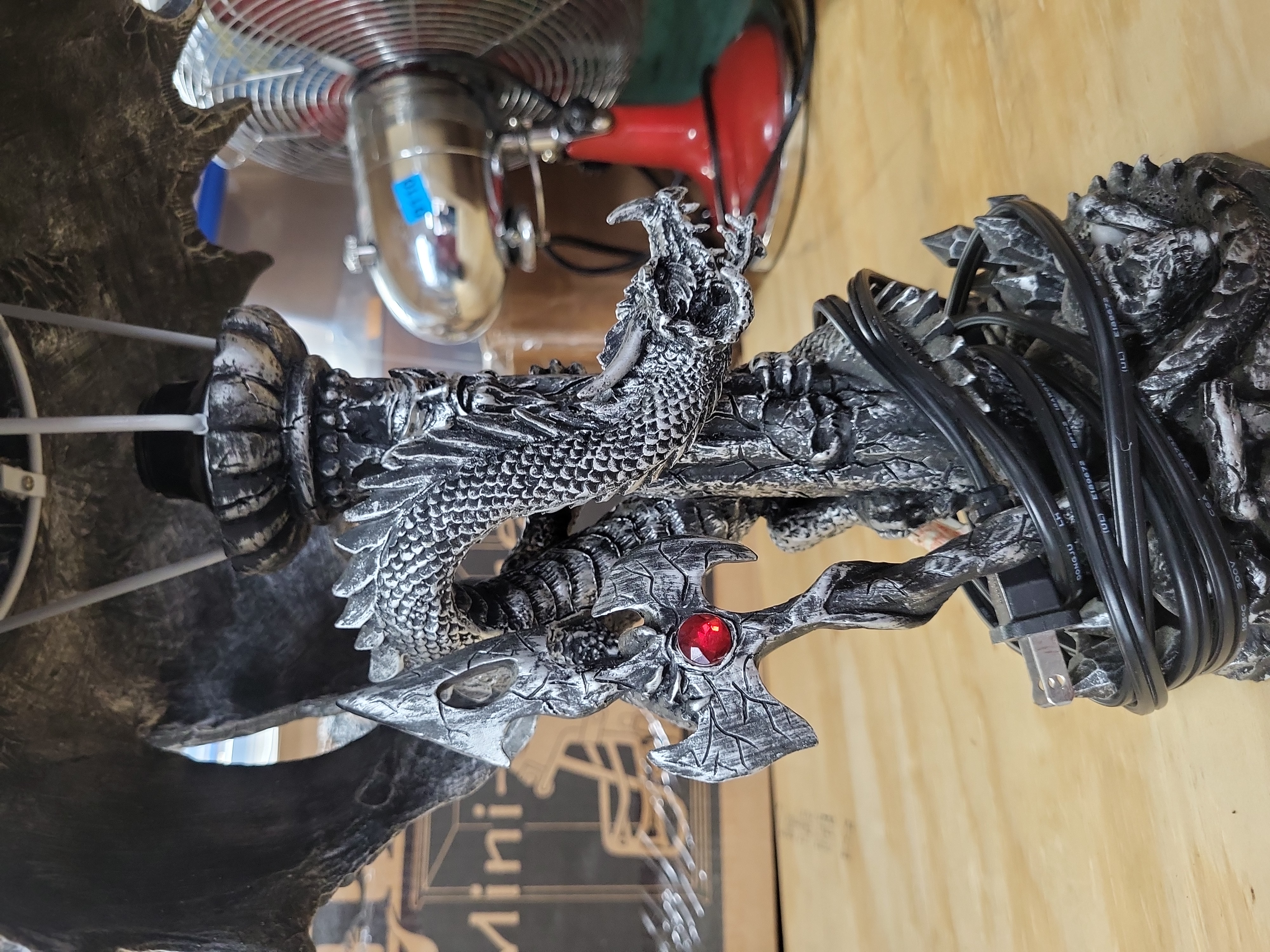 BID PER WHAT YOU SEE IN THE PHOTO, NOT THE AI GENERATED TITLES AND DESCRIPTIONS! Contemporary Fantasy Dragon Table Lamp Attributed to Ebros Gift