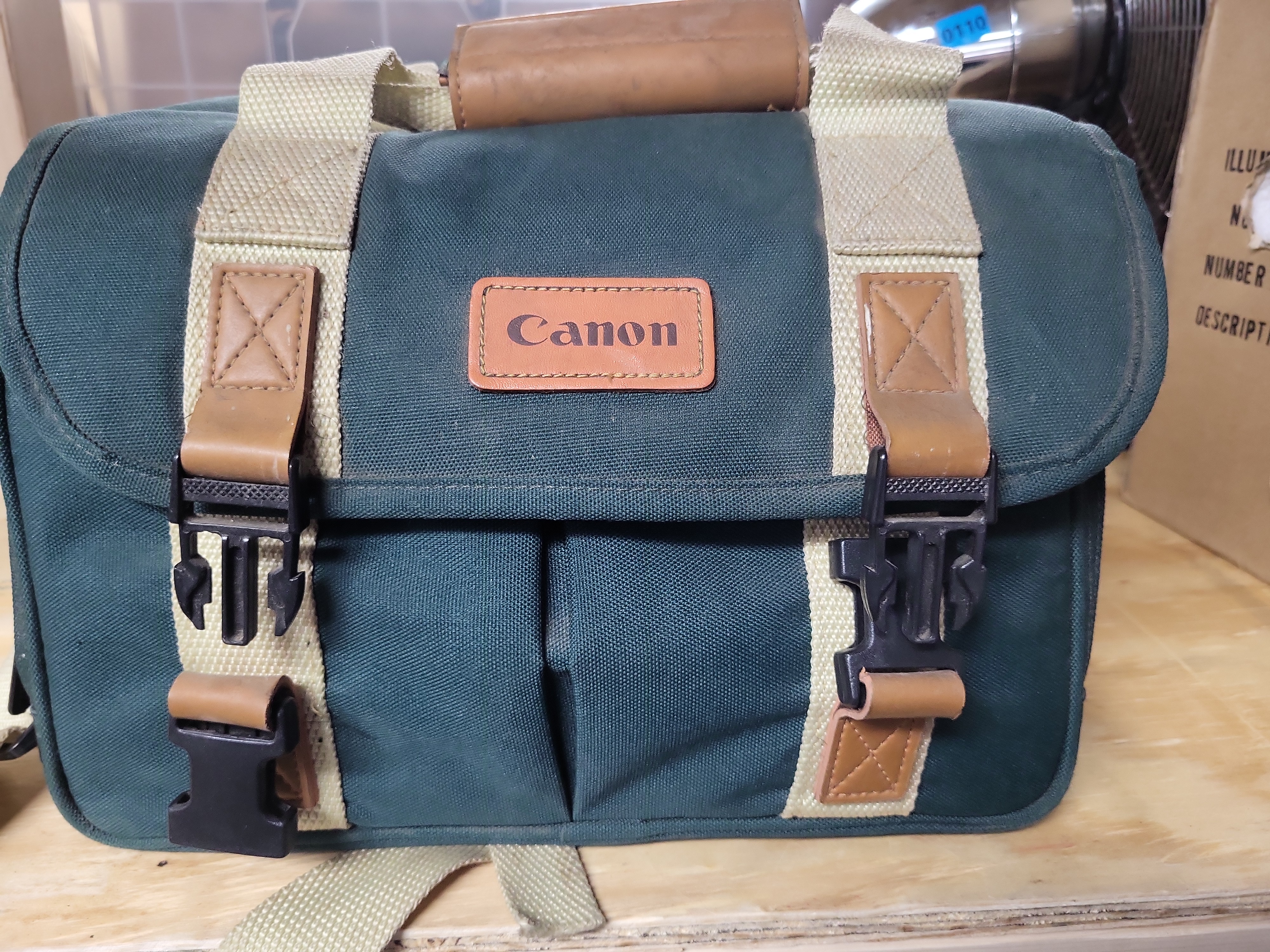 The equipment is in good used cosmetic condition. The Canon bag shows minor signs of wear and lint consistent with age. Lens barrels and hoods show light surface scuffs. External lens elements appear clean; however, the optics have not been professionally inspected for internal dust, fungus, or haze. Zoom and focus rings move freely. Mechanical and electronic functions have not been tested.