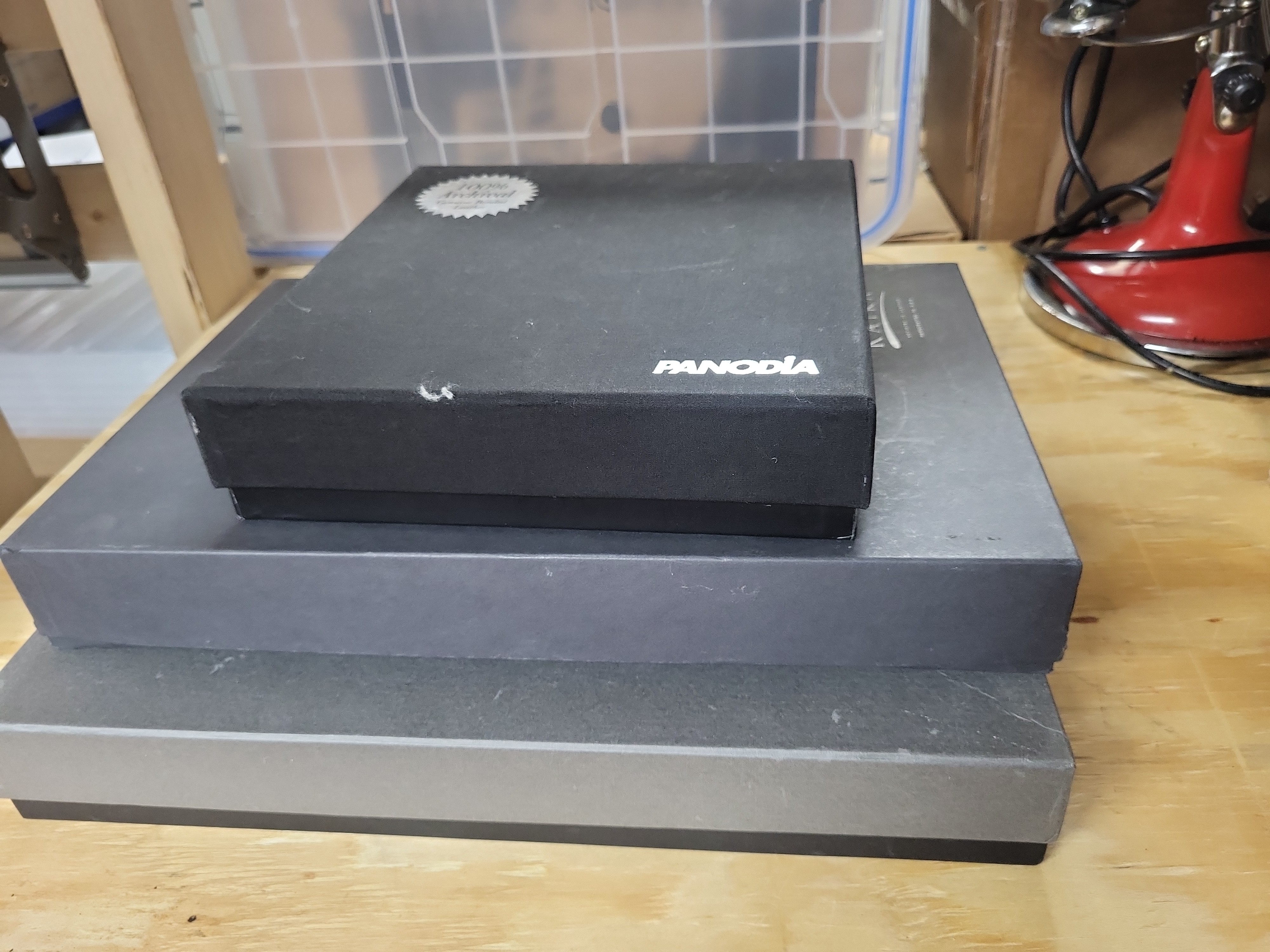 The collection is in excellent, unused condition. Many items retain original retail shrink-wrap, protective sleeves, or gift boxes. External packaging shows minor shelf wear, such as a small scuff on the Panodia lid, but the albums themselves are pristine.