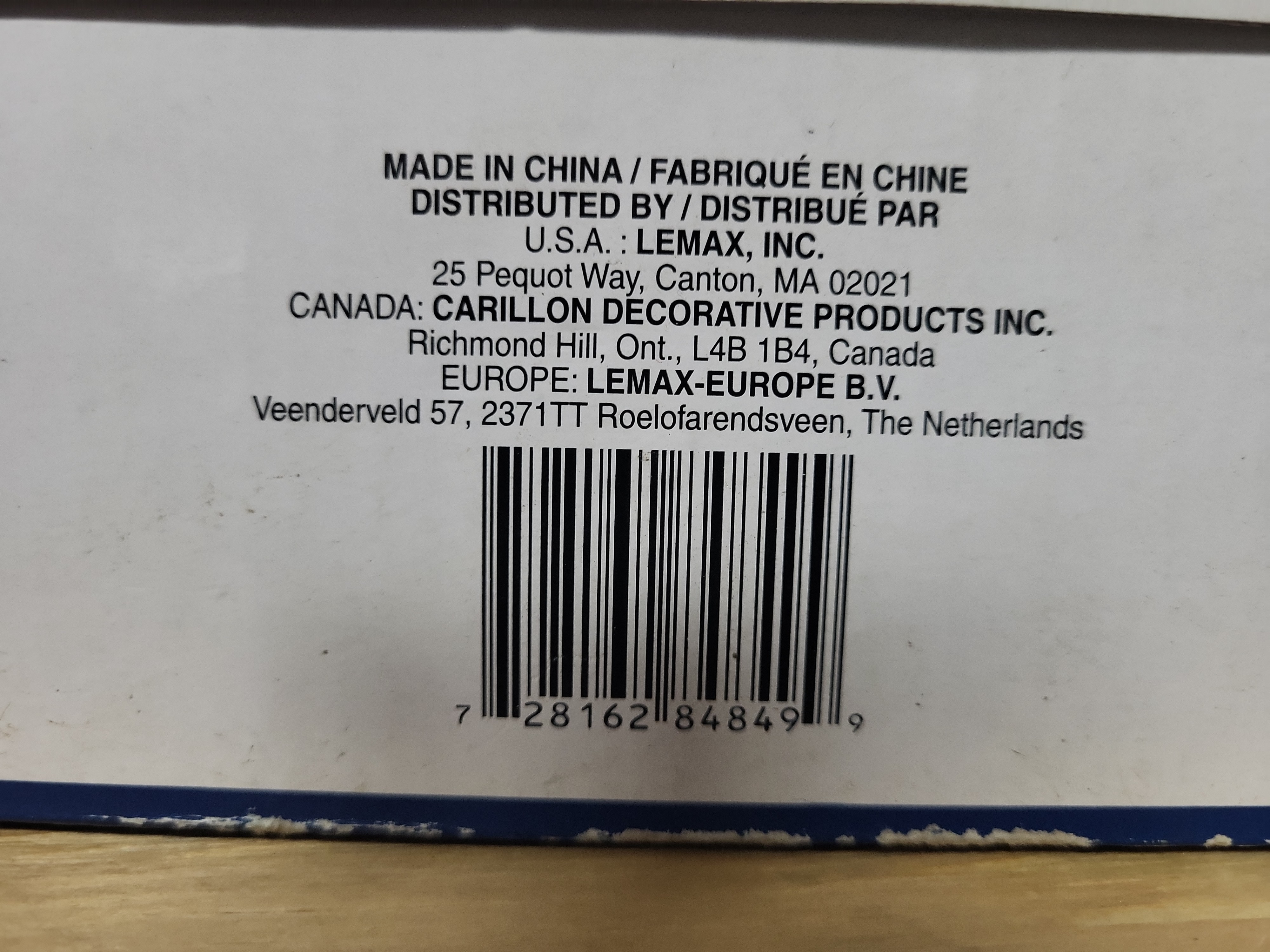 The item has not been removed from the packaging for internal inspection; visual condition through the box suggests the unit is complete and the paint remains vibrant. The internal lighting function is untested. The original box is present and shows moderate shelf wear, including scuffing, softened corners, and edge wear along the top and bottom flaps. A small area of surface paper loss is visible on the lower right corner of the front panel.