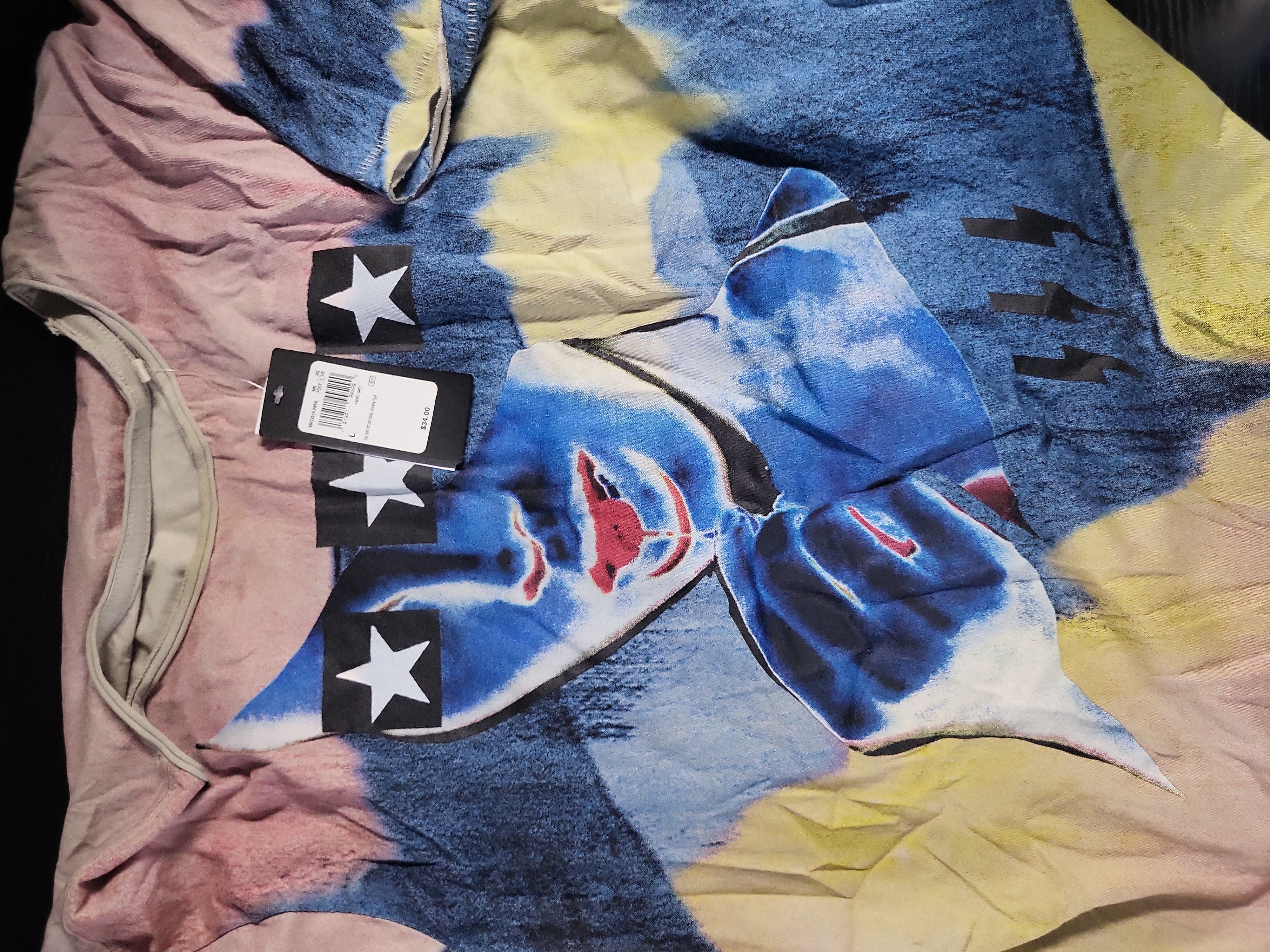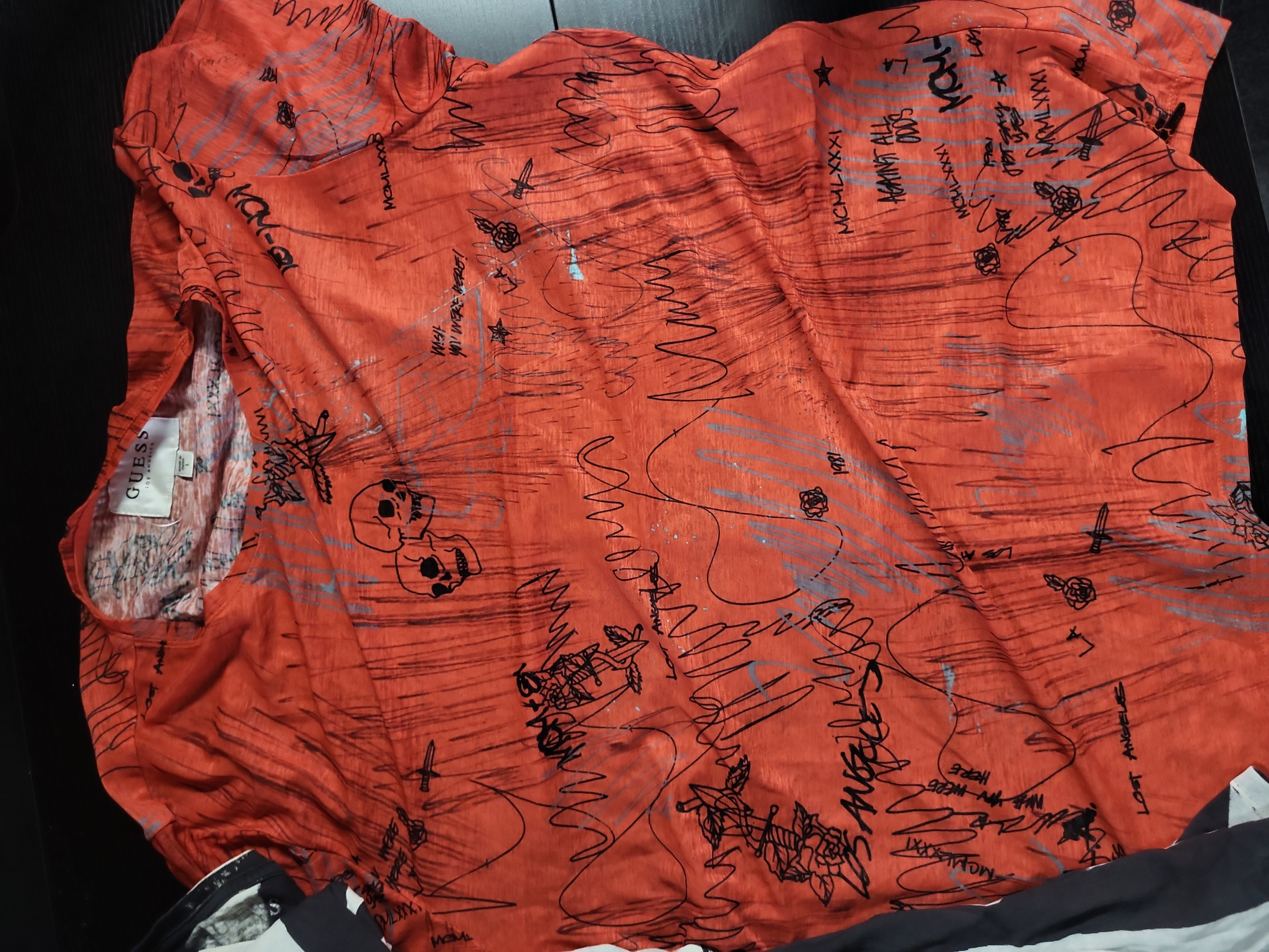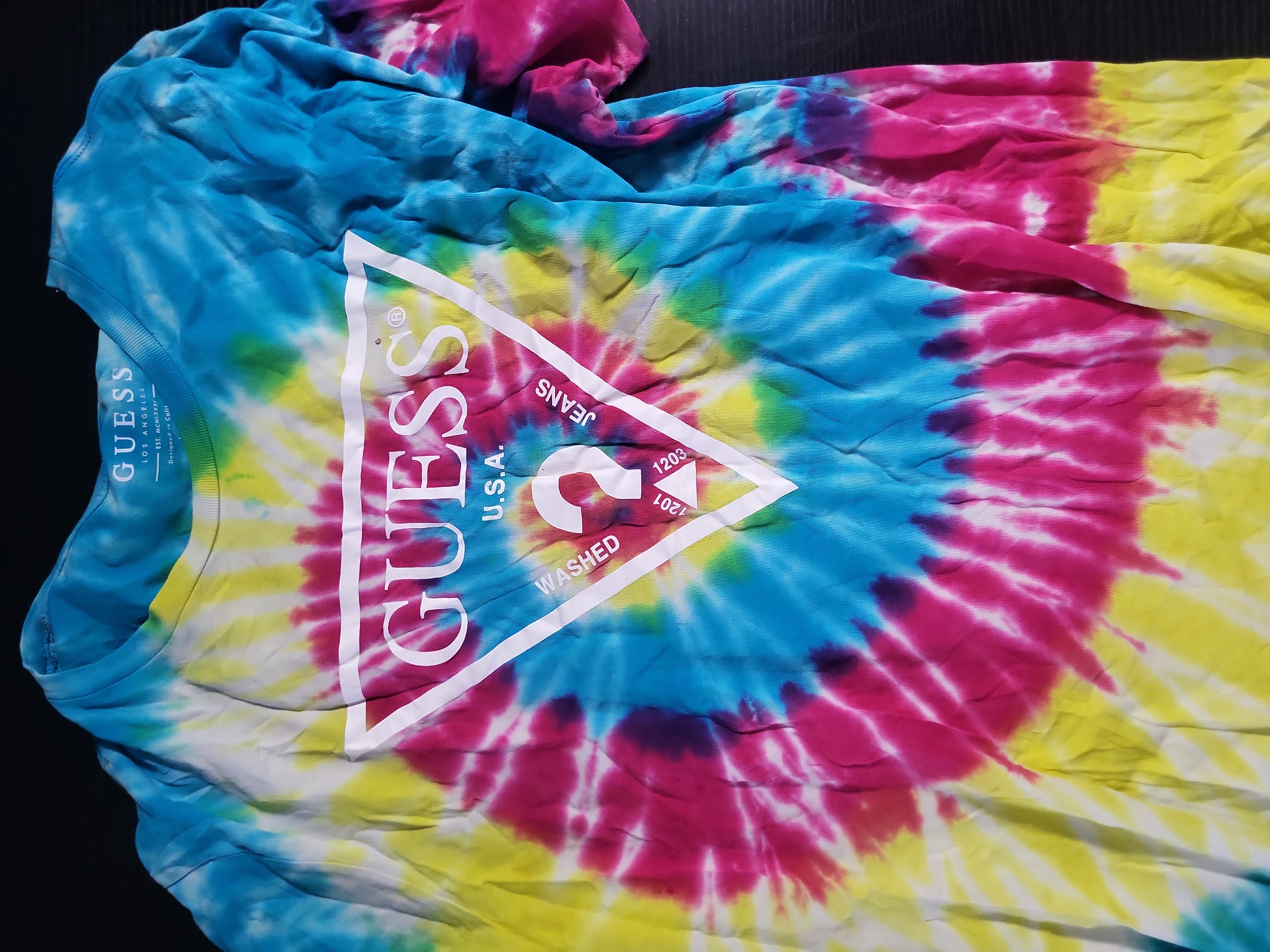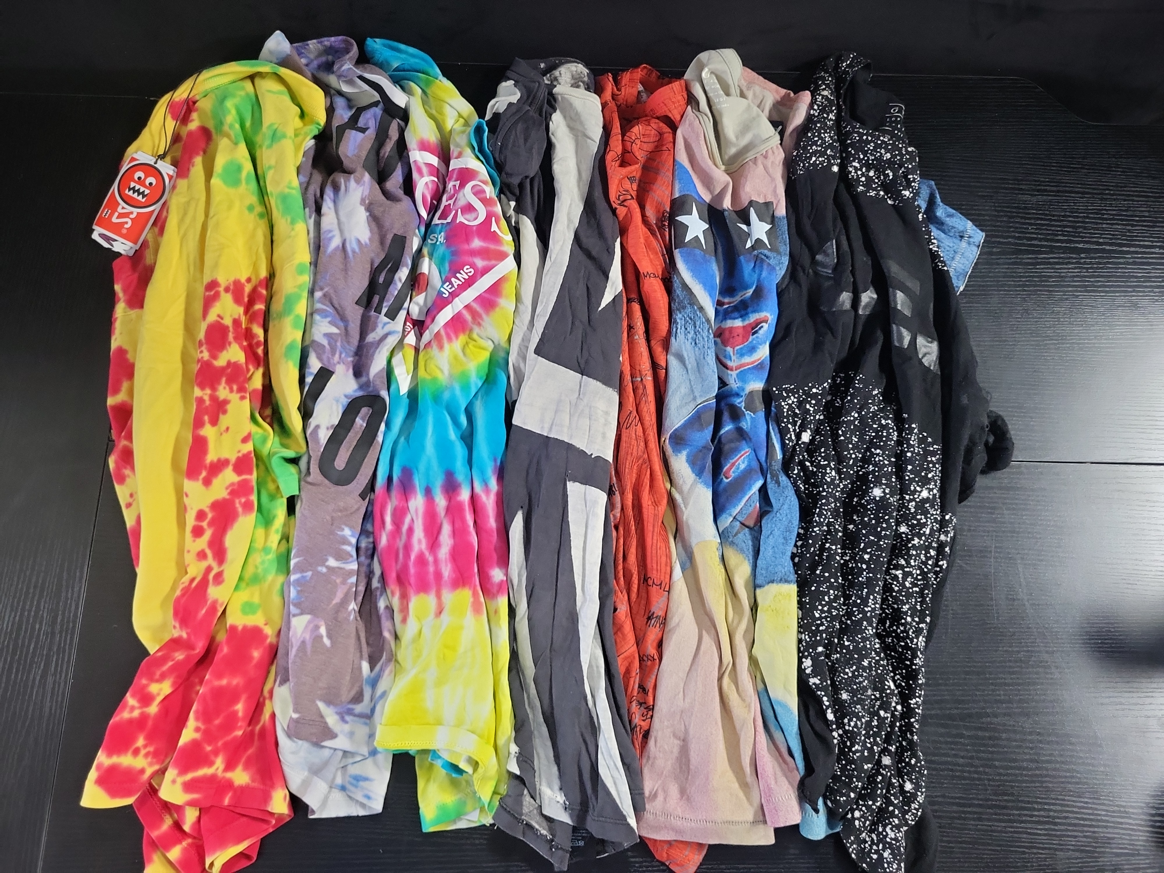 BID PER WHAT YOU SEE IN THE PHOTO, NOT THE AI GENERATED TITLES AND DESCRIPTIONS! Contemporary Assortment of Guess Graphic and Tie-Dye T-Shirts