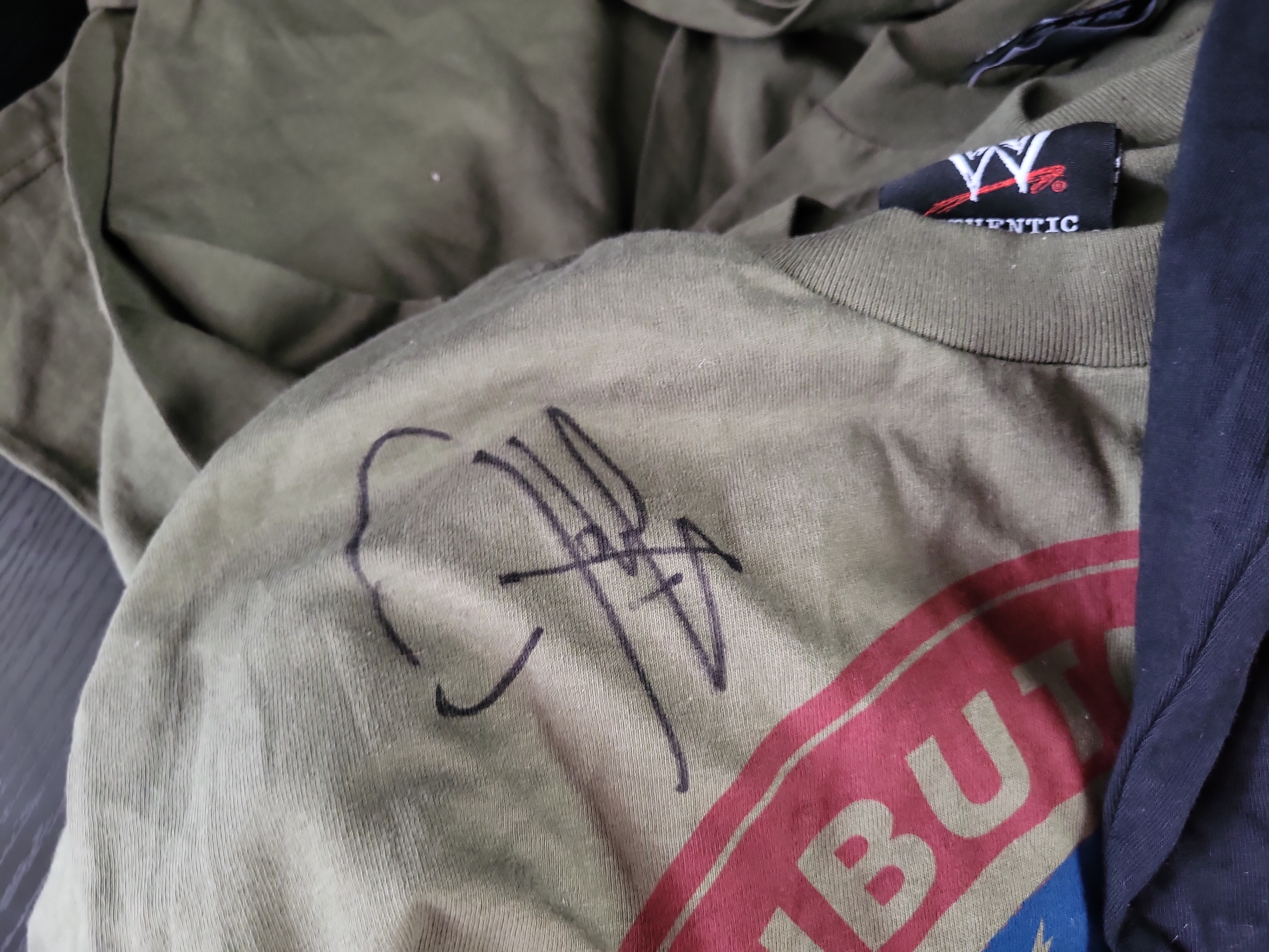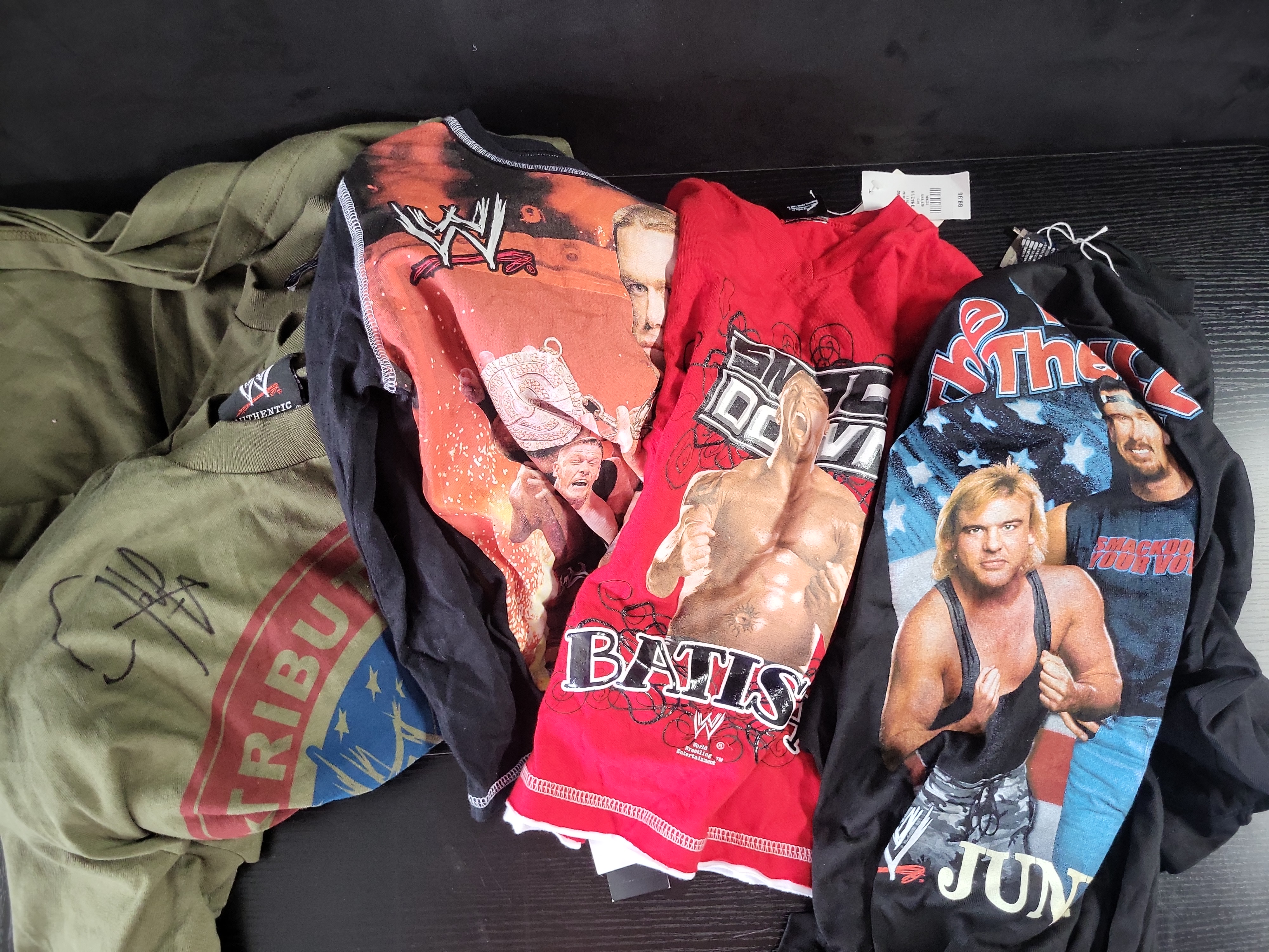 BID PER WHAT YOU SEE IN THE PHOTO, NOT THE AI GENERATED TITLES AND DESCRIPTIONS! Late 1990s to Mid-2000s WWE Graphic T-Shirt Collection Including Batista and Signed Tribute to the Troops