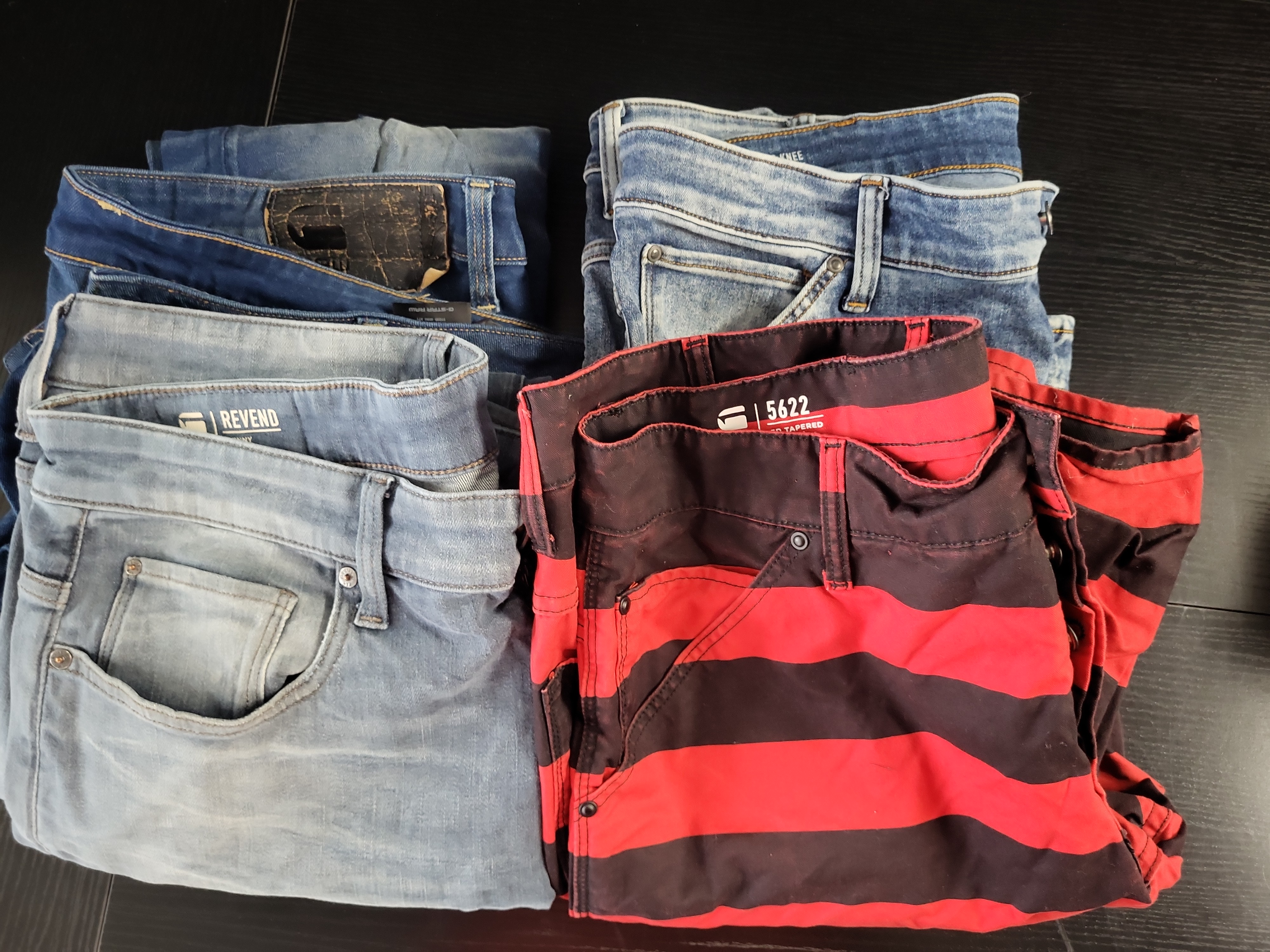 BID PER WHAT YOU SEE IN THE PHOTO, NOT THE AI GENERATED TITLES AND DESCRIPTIONS! 21st Century G-Star RAW Men’s Denim and Twill Trousers, 4 Pairs