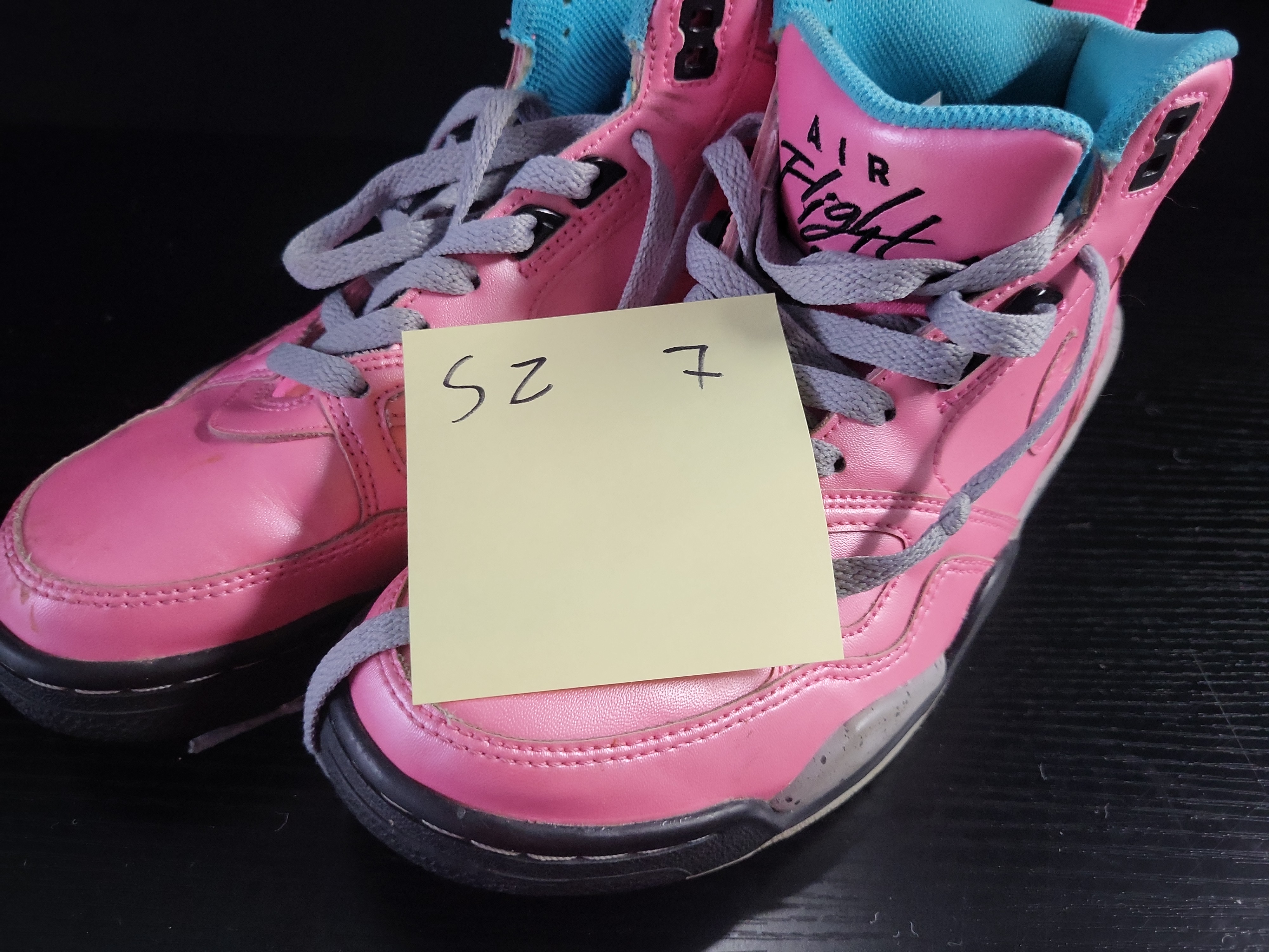 BID PER WHAT YOU SEE IN THE PHOTO, NOT THE AI GENERATED TITLES AND DESCRIPTIONS! Nike Wmns Flight 13 Mid Basketball Sneakers, Size 7, Pink Glow