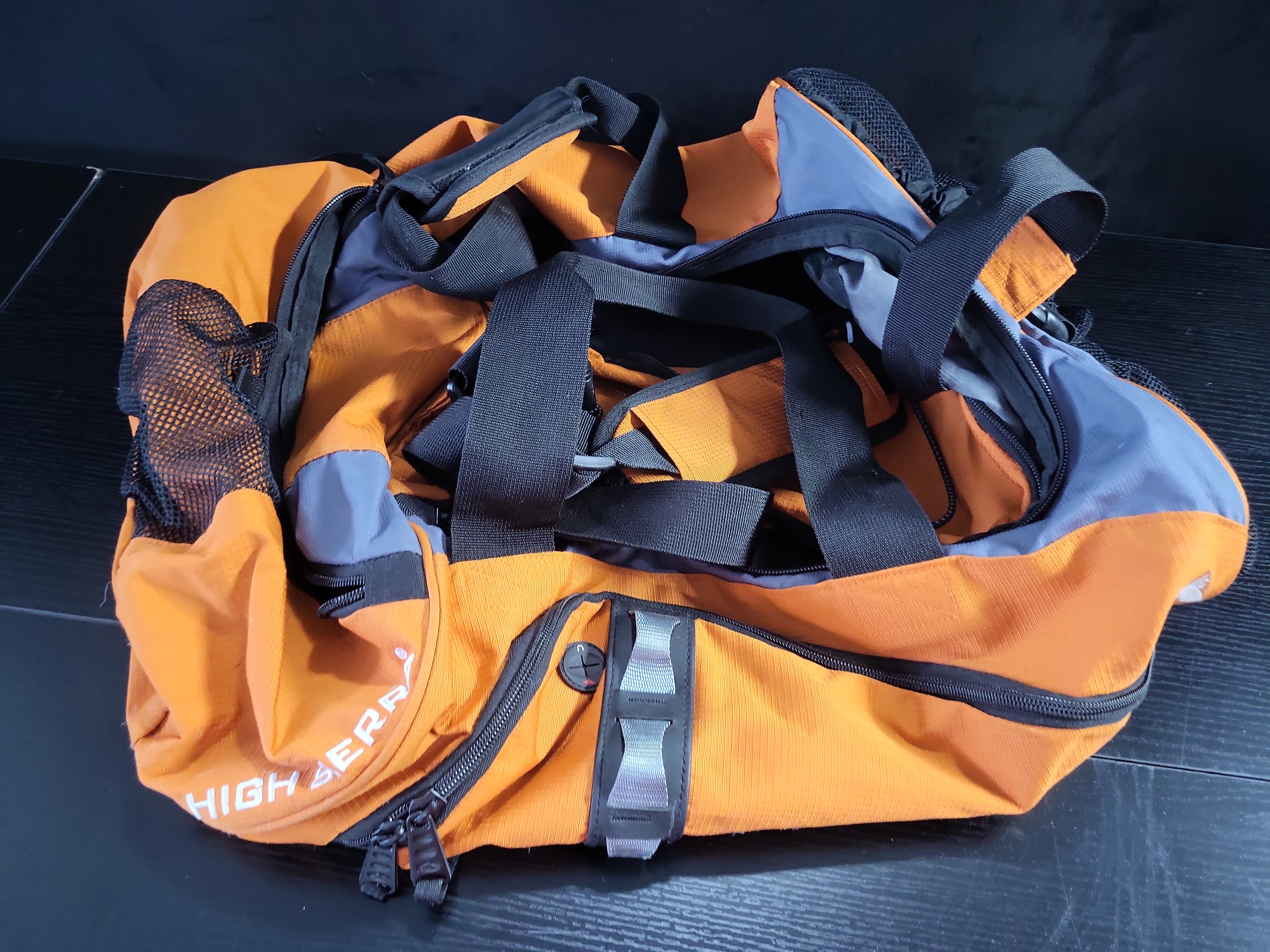 BID PER WHAT YOU SEE IN THE PHOTO, NOT THE AI GENERATED TITLES AND DESCRIPTIONS! High Sierra Convertible Duffel Backpack Ripstop Nylon Orange