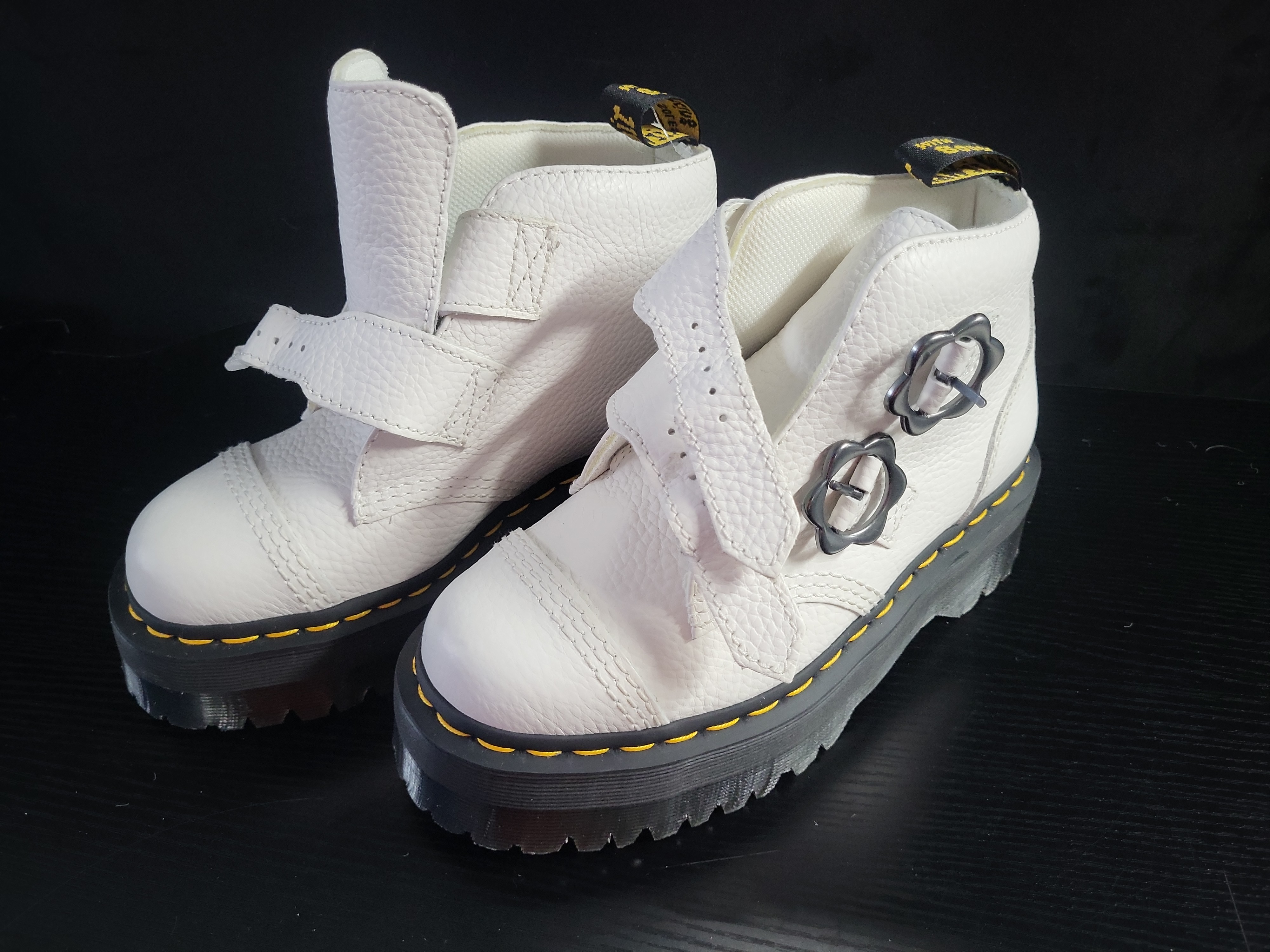BID PER WHAT YOU SEE IN THE PHOTO, NOT THE AI GENERATED TITLES AND DESCRIPTIONS! Dr. Martens Devon Flower Platform Boots Size US Women’s 6 White